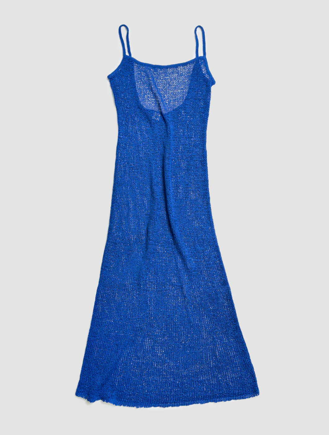 Made with a vibrant blue knitted material, this light and airy dress is perfect for those hot days. Stand out from the crowd and rock this playful and comfortable piece.