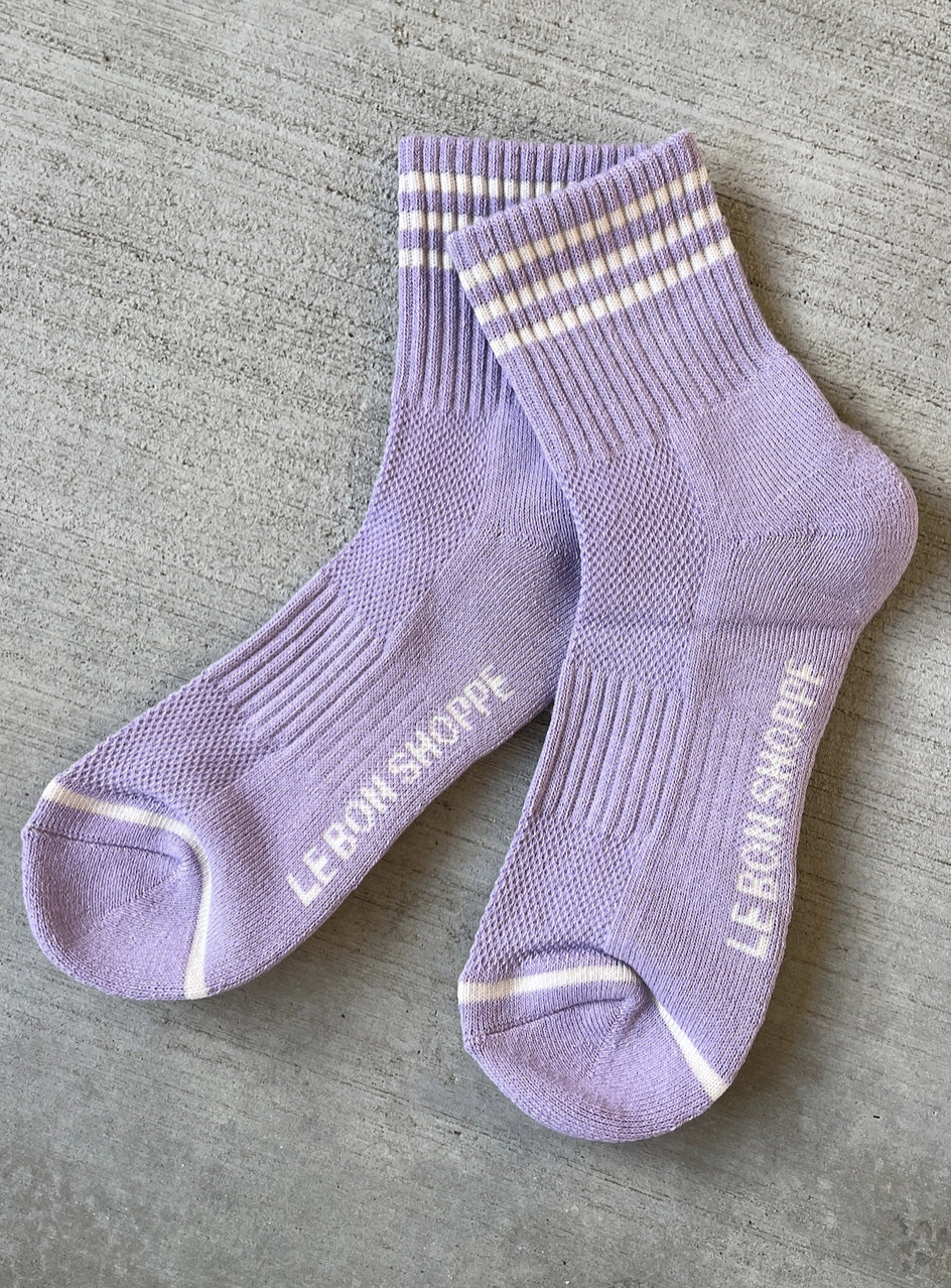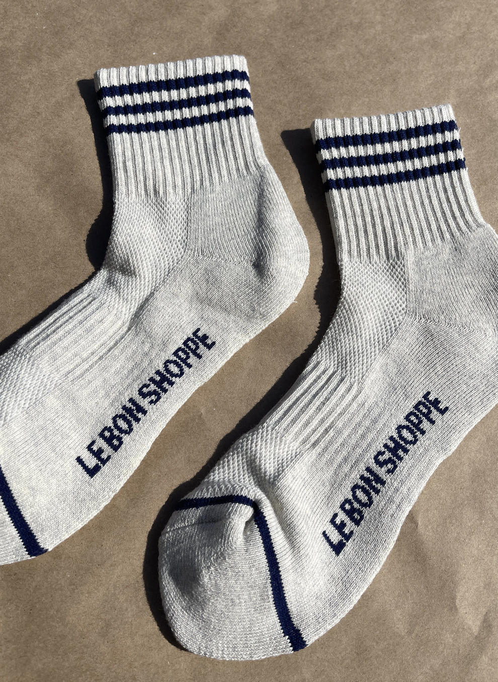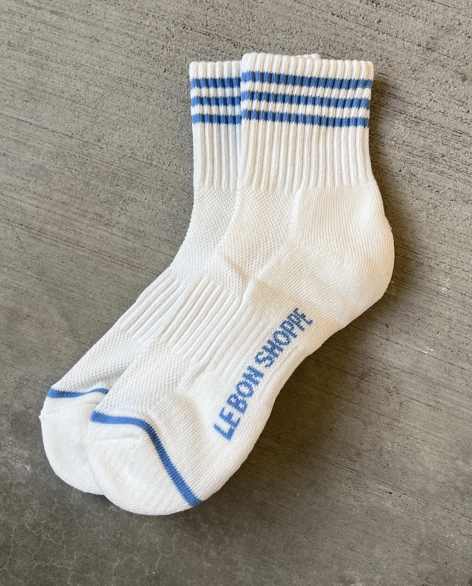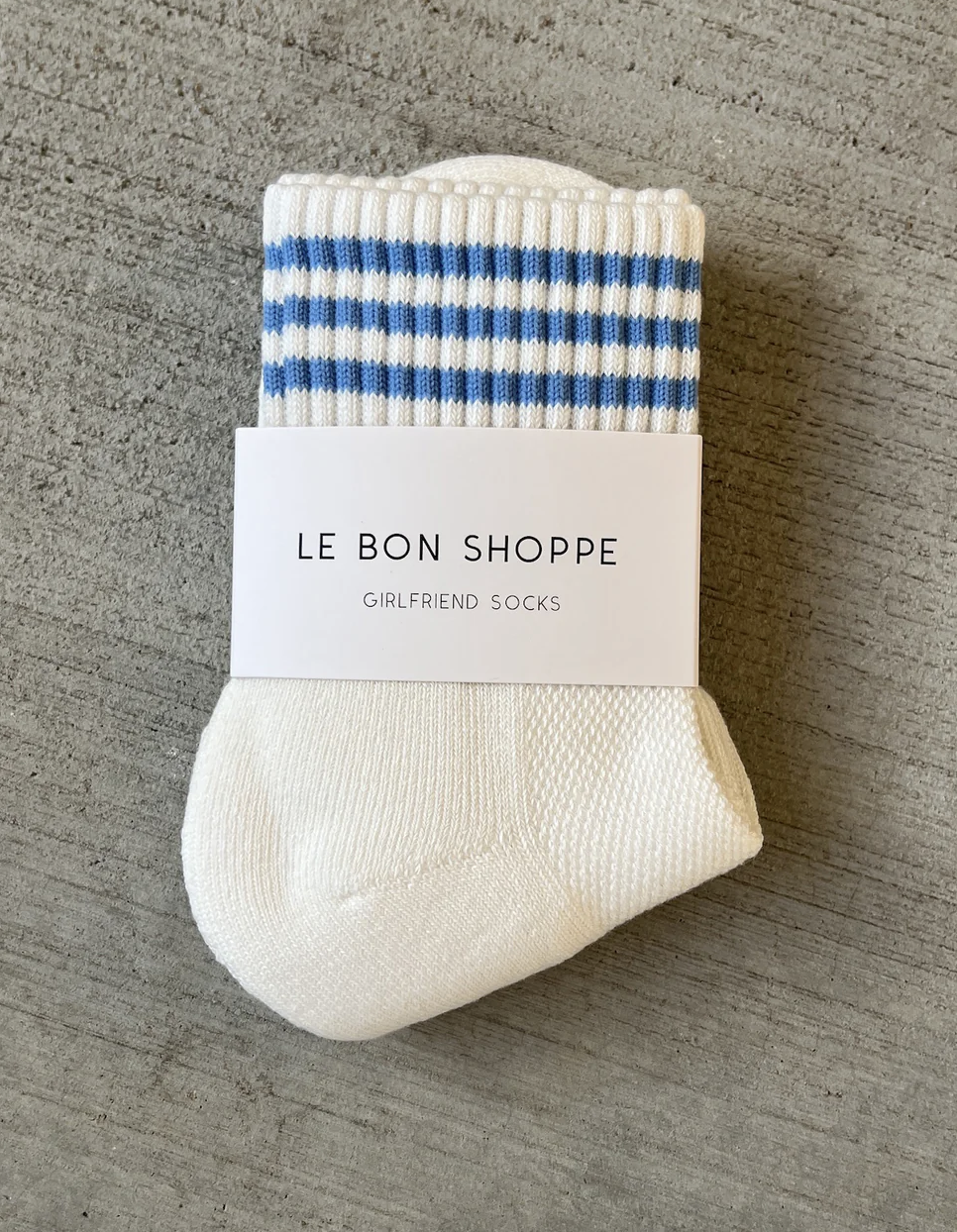 We loved our Boyfriend Socks so much we decided she needed a sister, the Girlfriend Socks is the cool crew version of our original bestseller and classic Boyfriend Socks. These beauties feature a triple contrast stripe at the opening and a shorter classic crew sock length. She is a universally quintessential sock and especially flattering for our petite ladies.