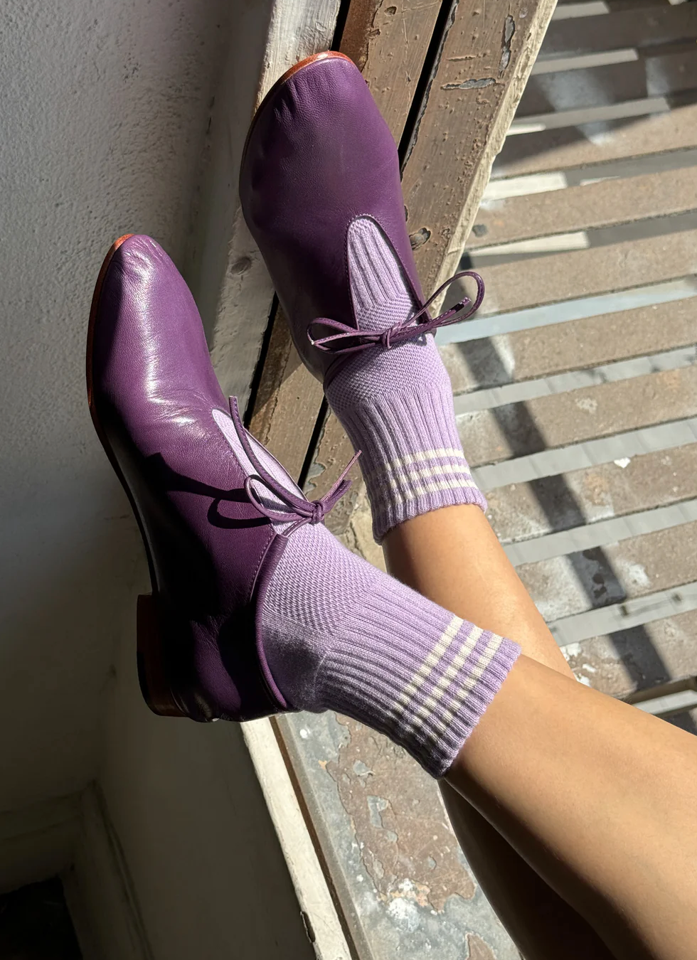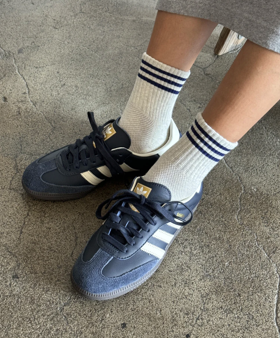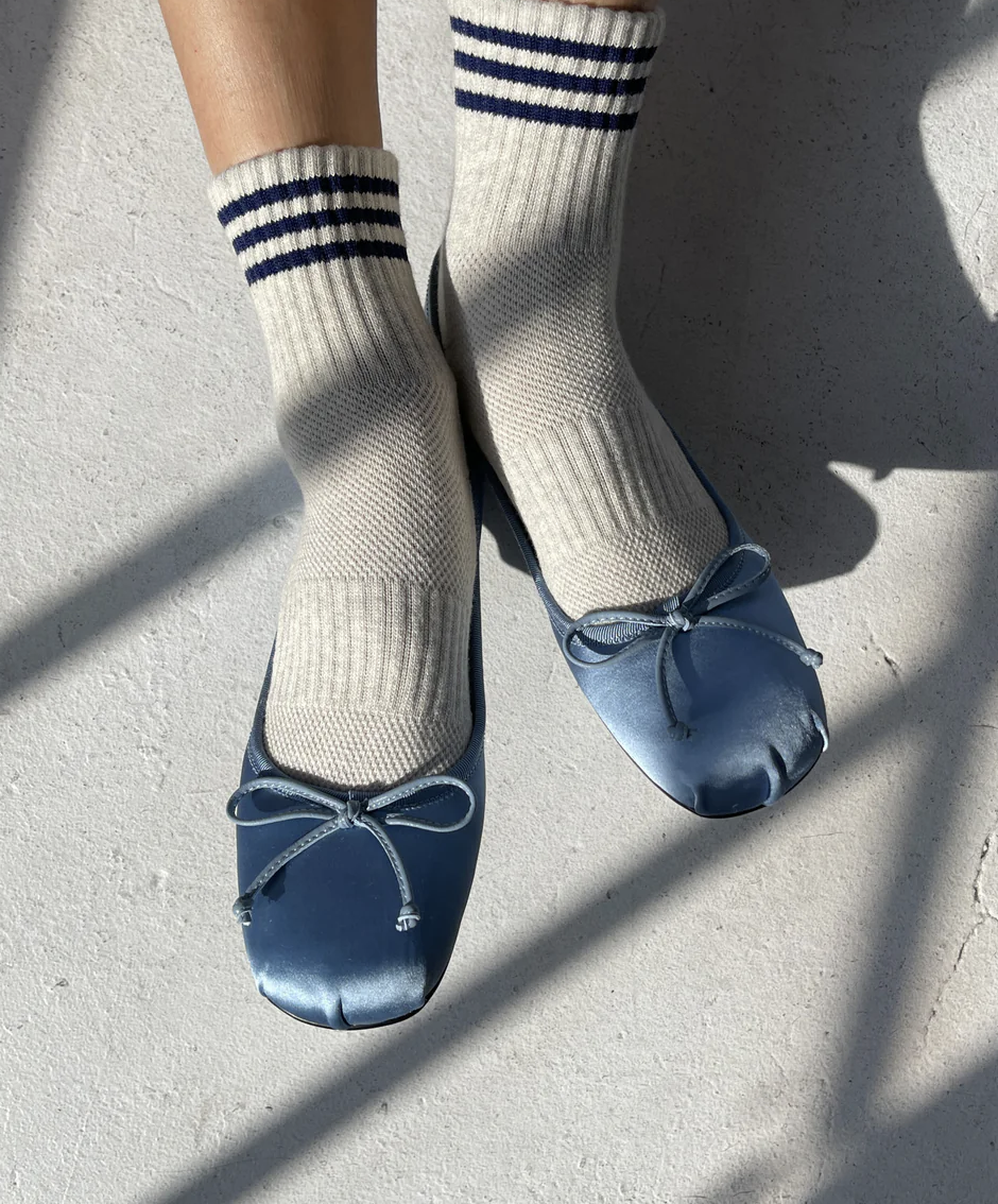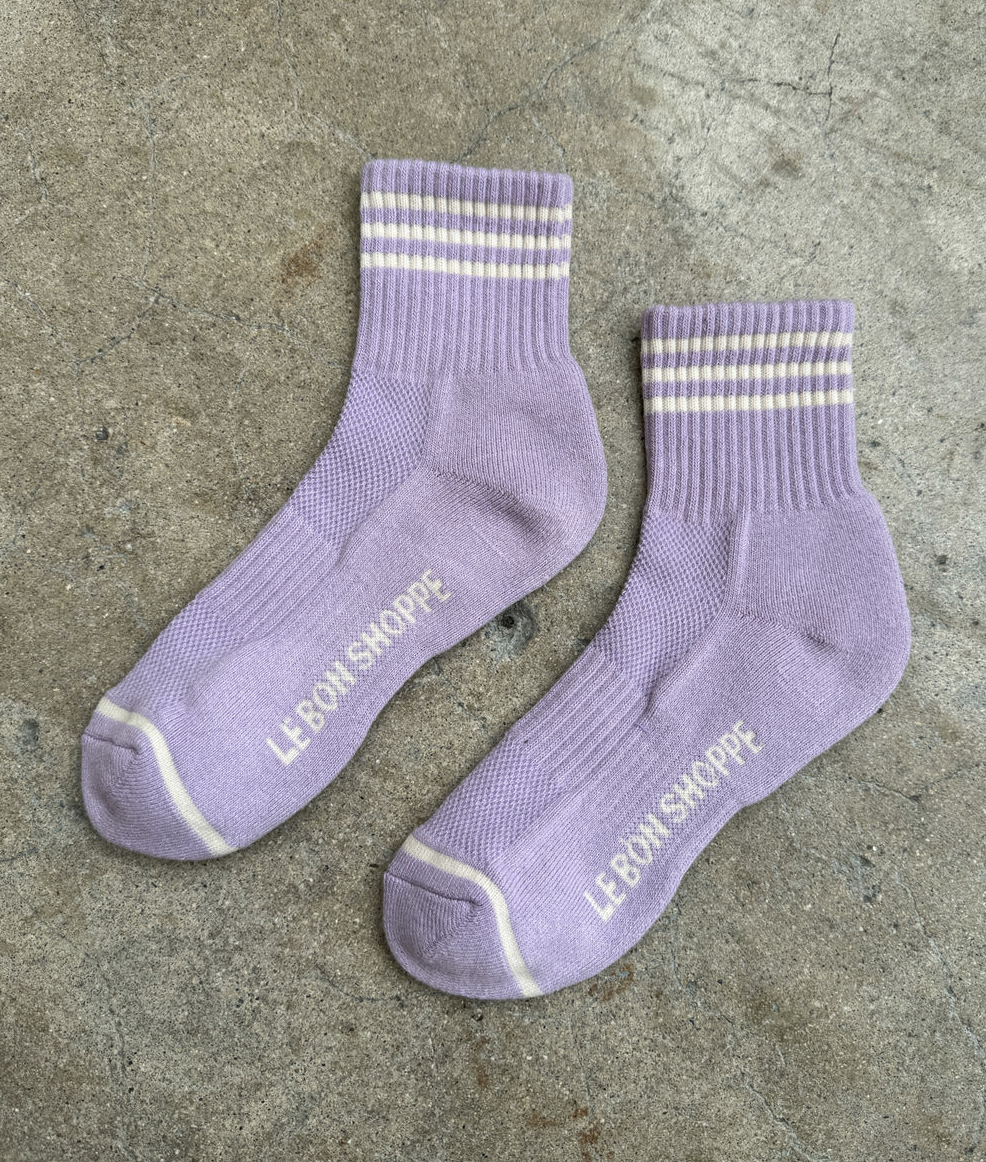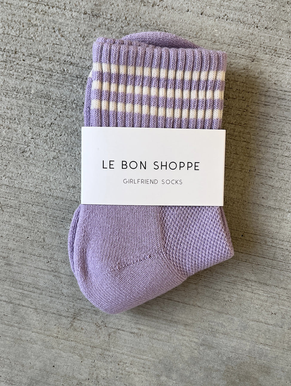 We loved our Boyfriend Socks so much we decided she needed a sister, the Girlfriend Socks is the cool crew version of our original bestseller and classic Boyfriend Socks. These beauties feature a triple contrast stripe at the opening and a shorter classic crew sock length. She is a universally quintessential sock and especially flattering for our petite ladies.
