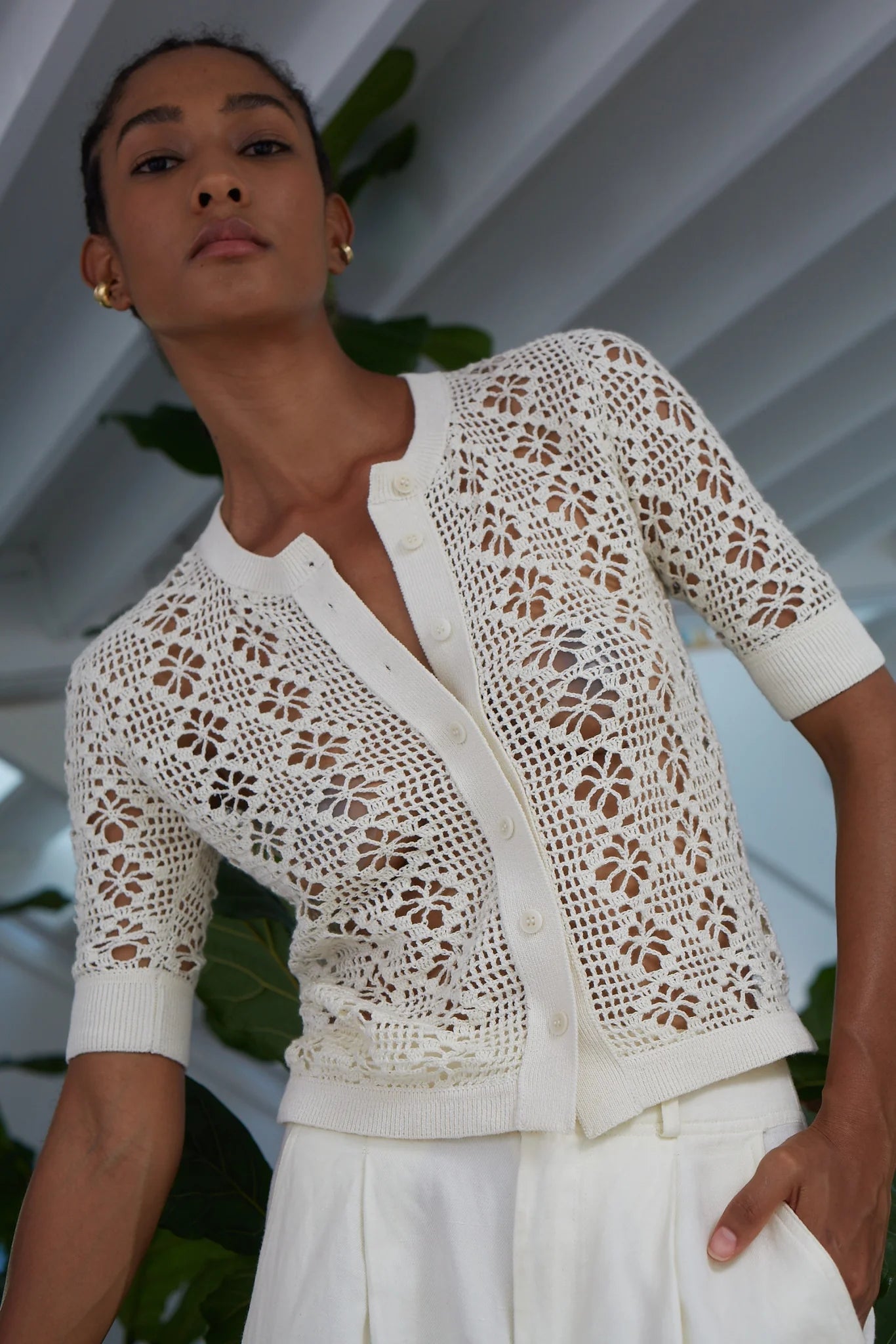 The Ruby Crochet Cardi is made from a bold, yet delicate, textured hand-crochet technique. Ruby is a versatile statement cardi that can be dressed up or worn in a casual way, buttoned-up, solo, or, as a layering piece, depending on your styling mood. Ruby works timelessly within seasons with its open stitch and elbow length sleeves.