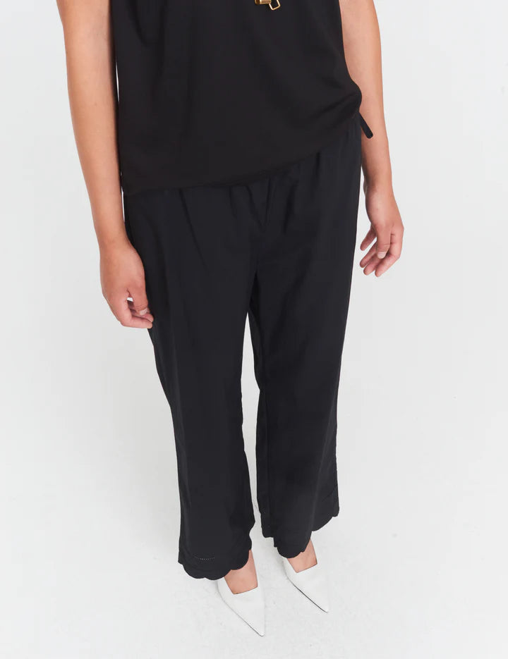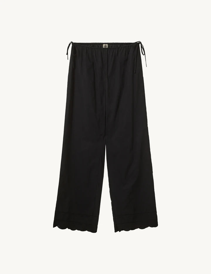 THE KIRSTEN PANTS ARE A MUST-HAVE SUMMER STAPLE, CRAFTED FROM 100% ORGANIC COTTON FOR A LIGHTWEIGHT AND BREATHABLE FEEL. DESIGNED FOR EFFORTLESS COMFORT, THEY FEATURE AN ADJUSTABLE WAISTBAND WITH DELICATE DRAWSTRINGS, ALLOWING FOR A CUSTOMIZABLE FIT. PERFECT FOR WARM-WEATHER DAYS, THESE VERSATILE PANTS BLEND STYLE AND EASE FOR ANY SUMMER OCCASION.
