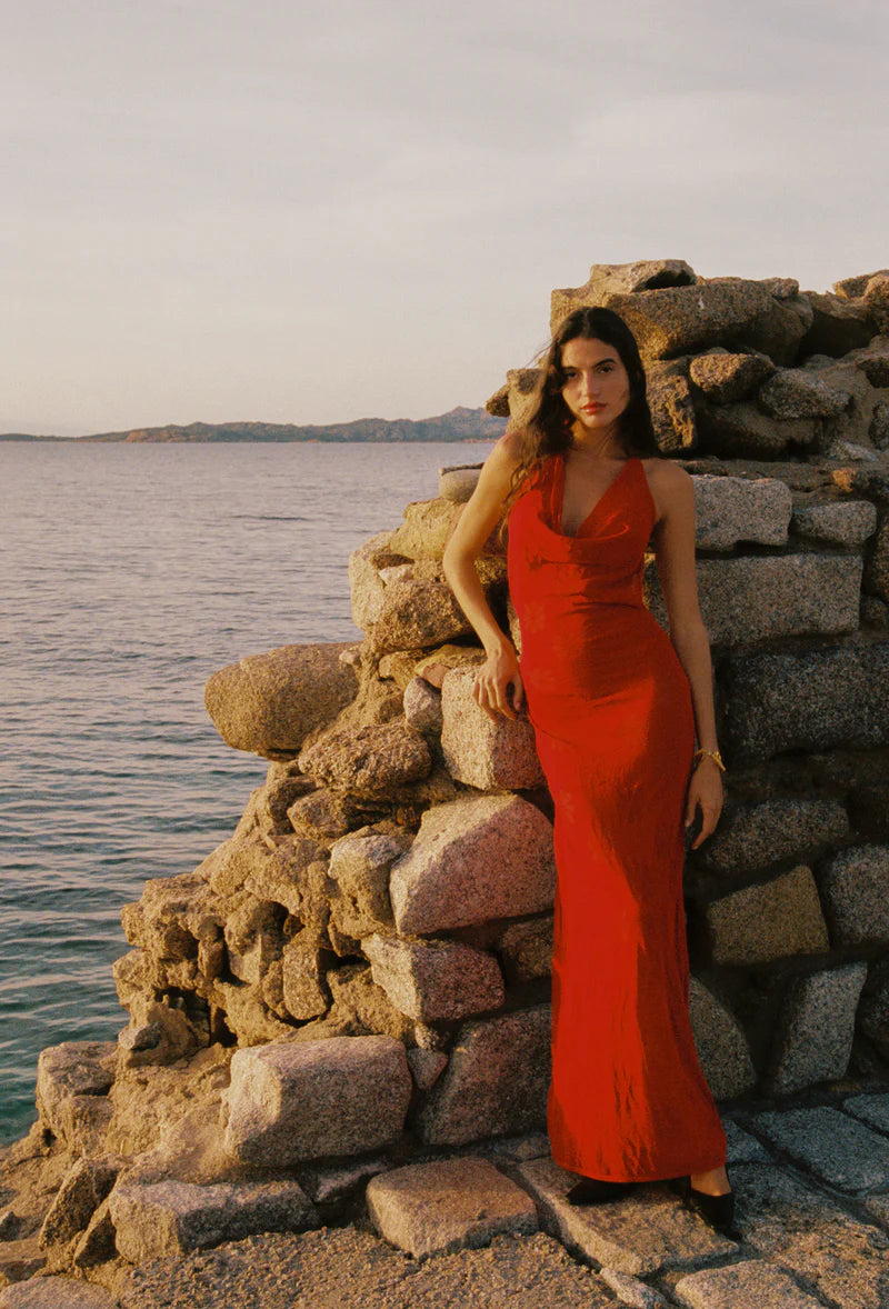 The Klara Maxi Dress by ASTA RESORT is a piece to be remembered in. A backless maxi silhouette with a thin halter neck ties for elevated simplicity and comfort. Featuring Asta Resort's signature jacquard motif.