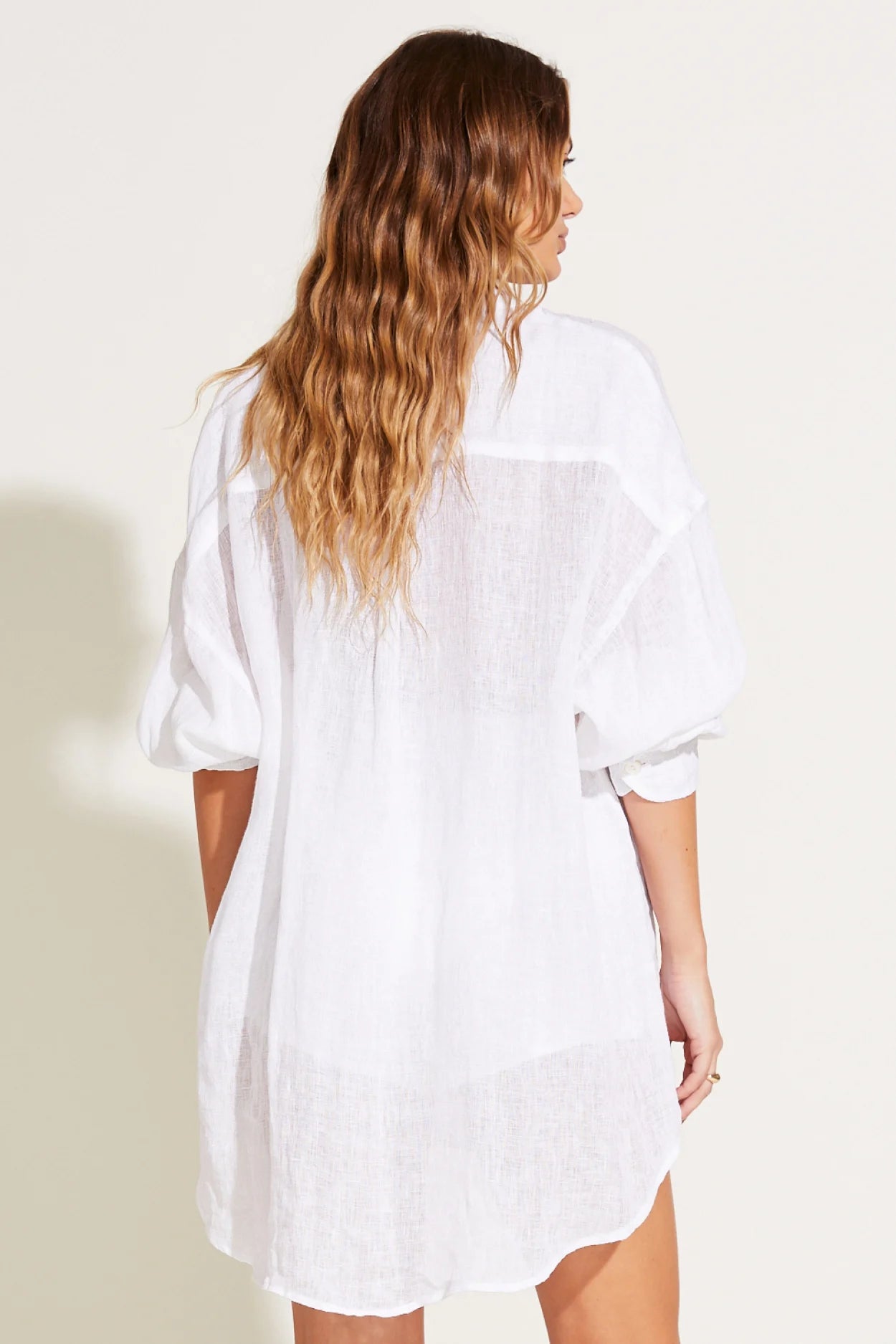 Looking for a light and airy cover up that will take you from the beach to cocktails? Our best-selling linen cover up in Agave is perfect for a casual look that's easy to wear. We recommend sizing down for the perfect oversized fit.