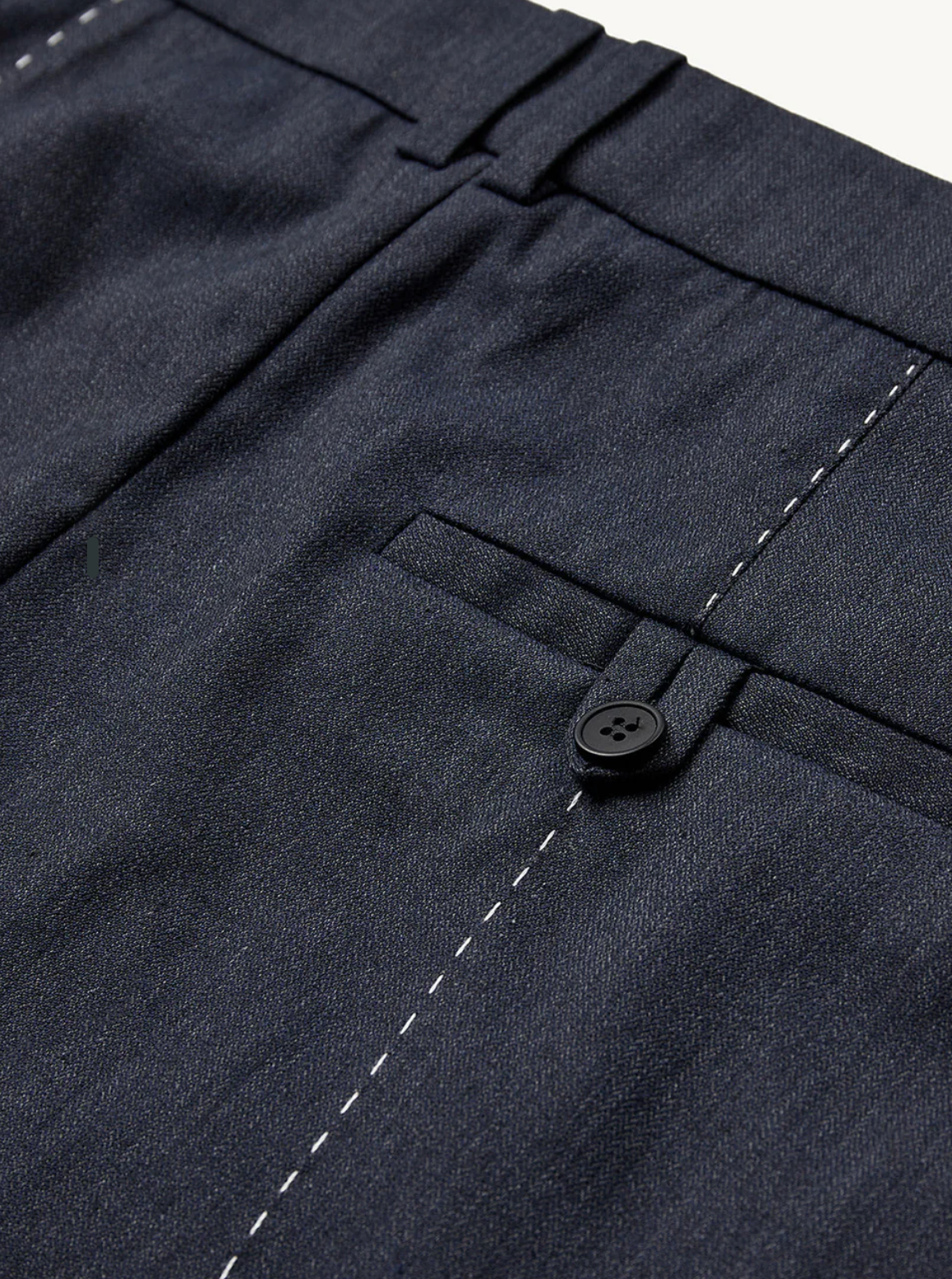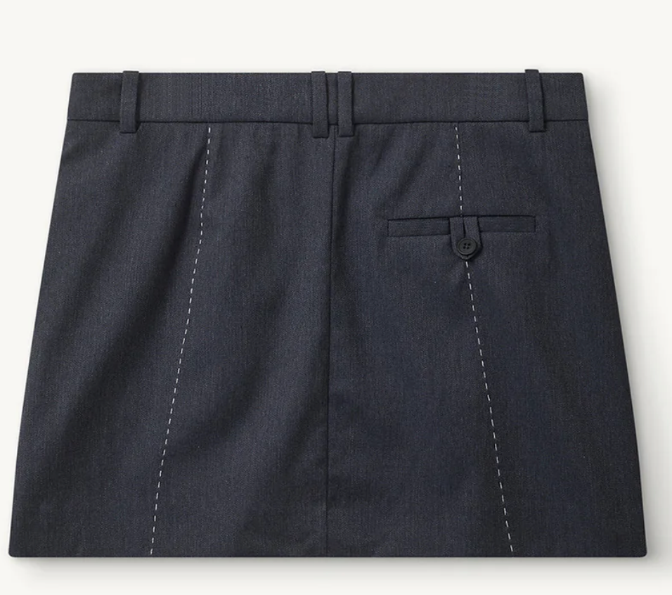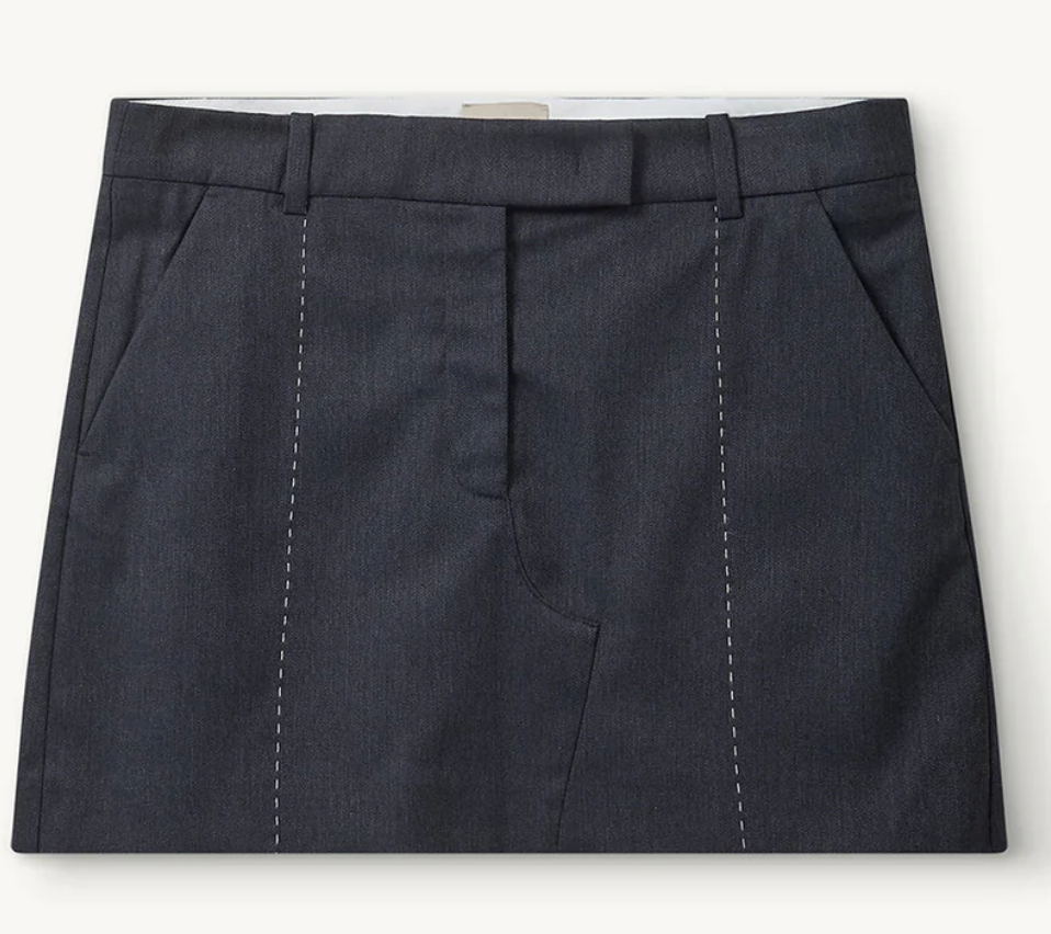 The Pluto Stitch Mini Skirt, a chic and sustainable addition to your collection. Crafted from recycled polyester and viscose, this tailored mini skirt exudes timeless elegance. Perfect for elevating your look with style and conscience.