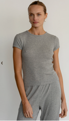 The Pointelle Baby Tee is crafted from lightweight 100% organic cotton. With a timeless pointelle knit, classic crew neckline, and cap sleeves, it skims the body for a flattering fit—an easy essential for every season.