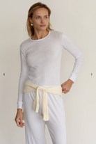 Refined yet effortless, The Pointelle Long Sleeve is crafted from lightweight 100% organic cotton. Featuring a timeless pointelle knit, crew neckline, and baby rib cuffs, it skims the body with a flattering drape—perfect for year-round layering.