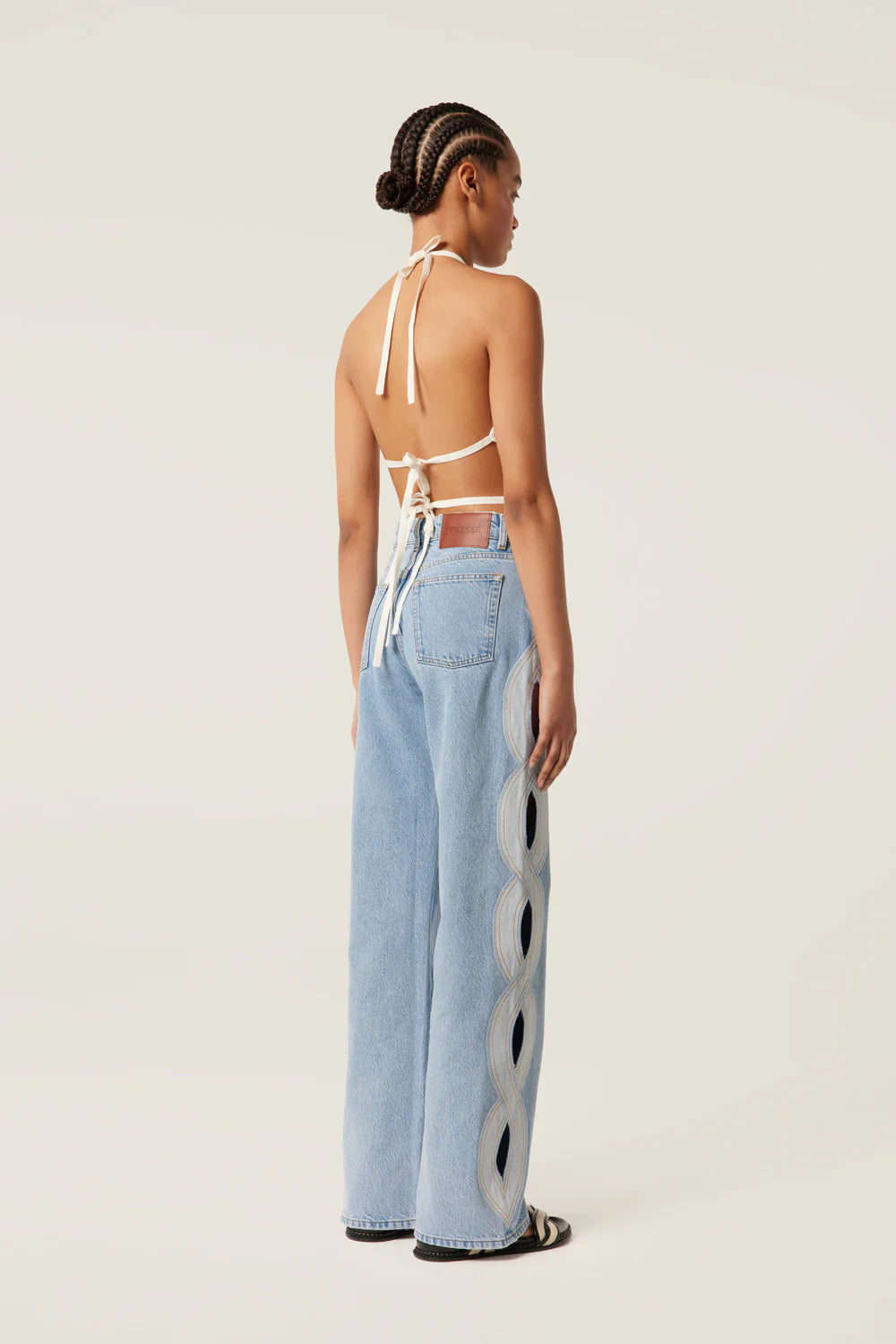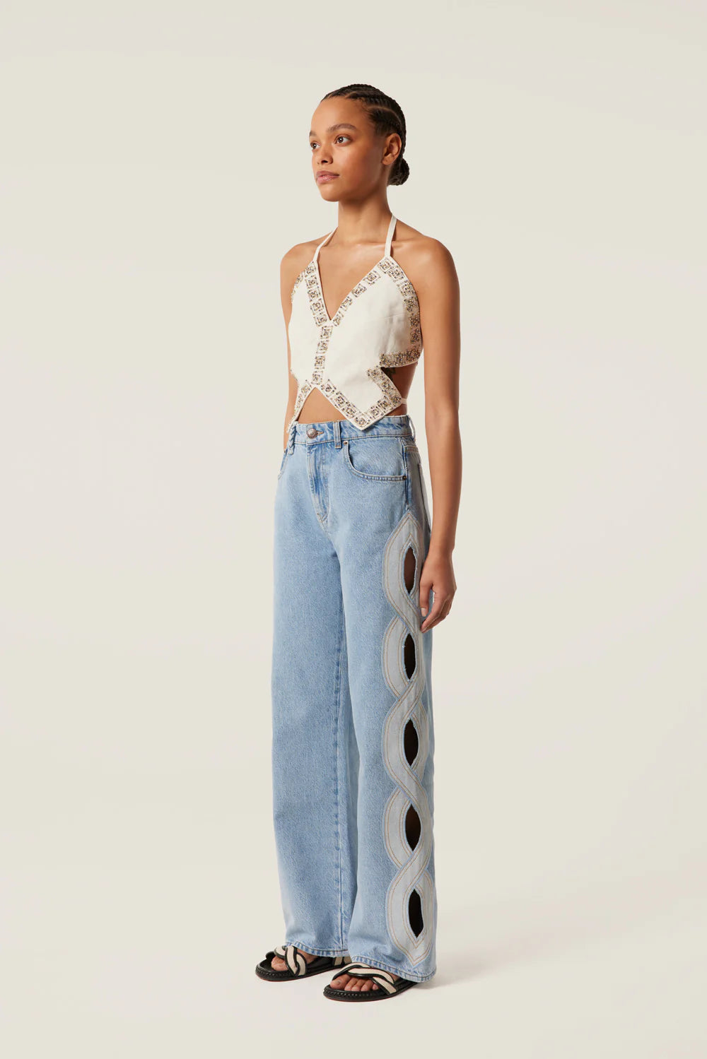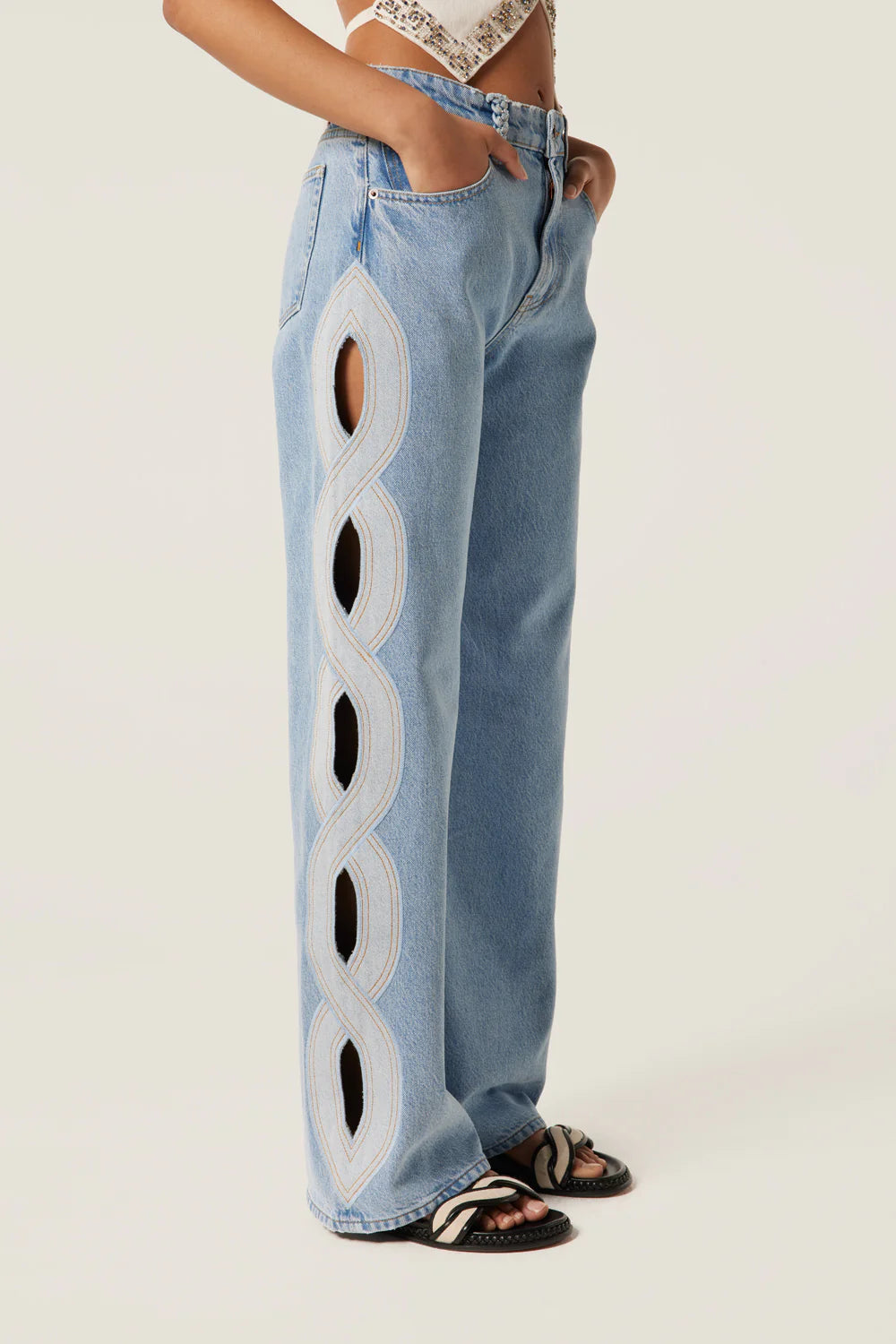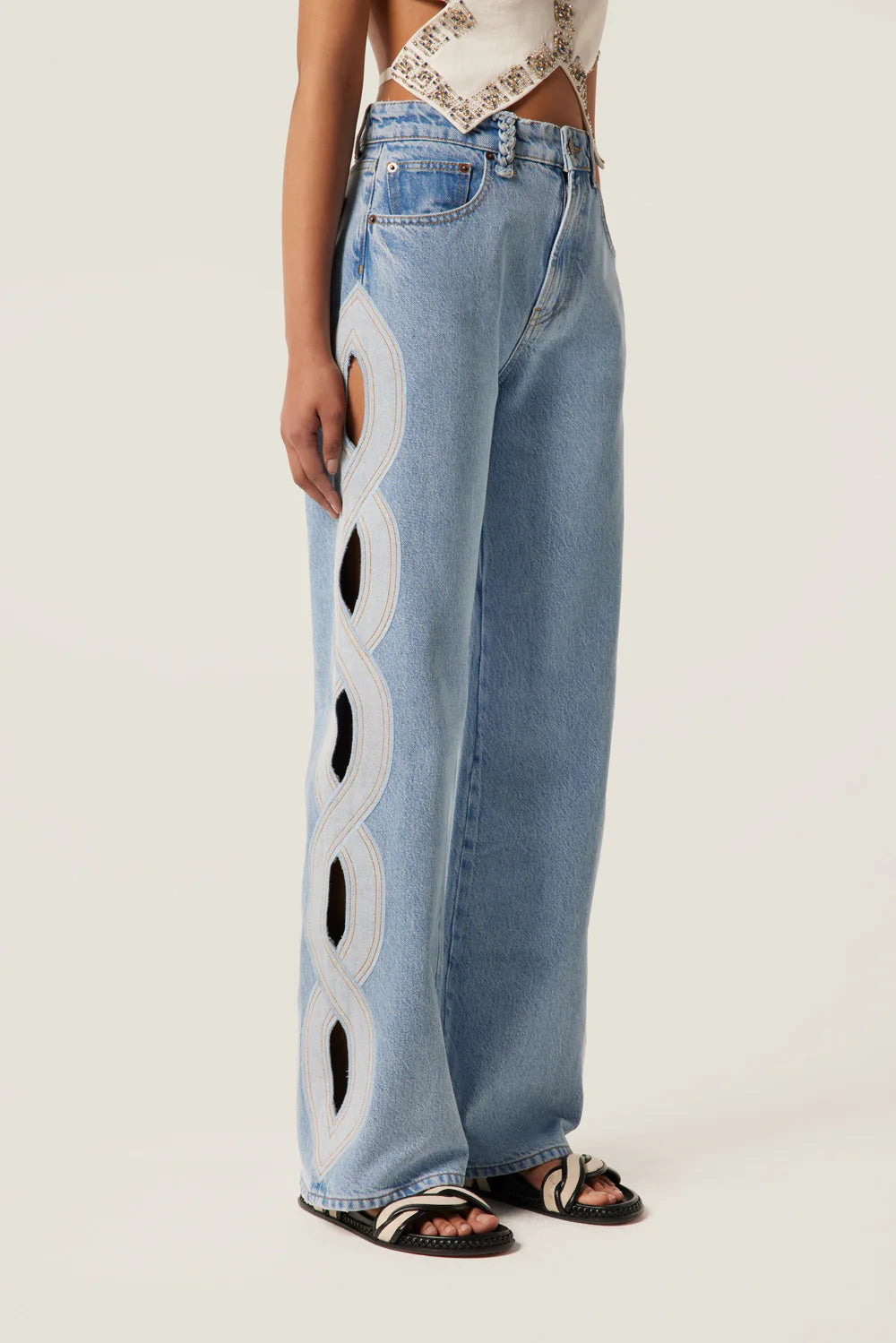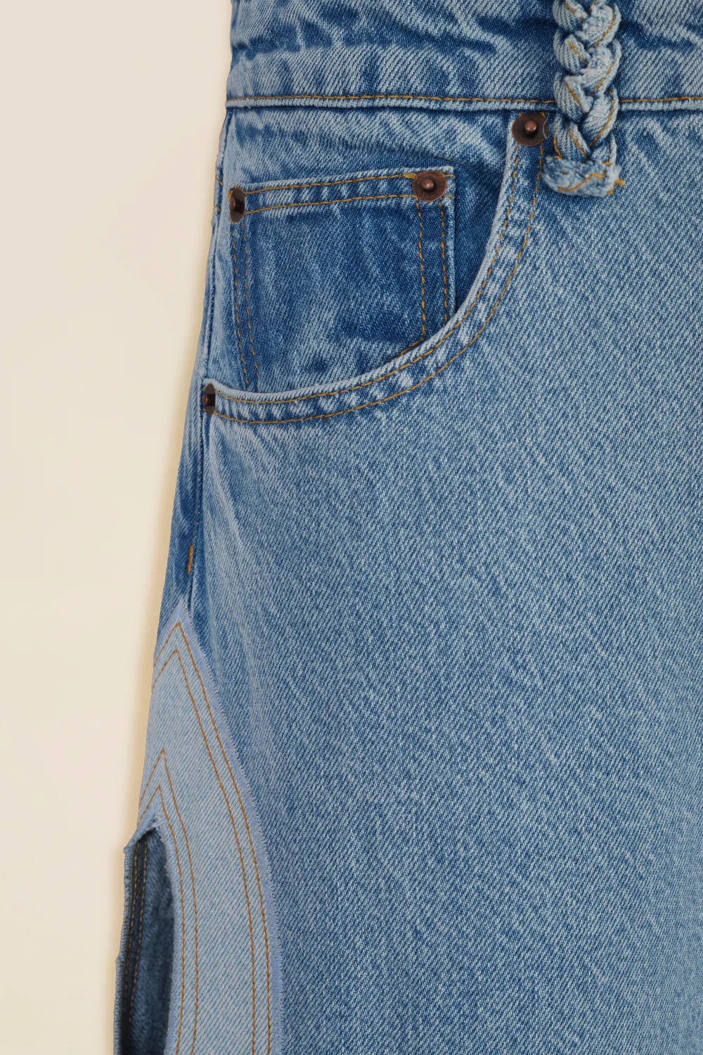 Light denim with braid opening