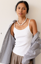 A year-round essential, effortlessly versatile for layering or wearing solo. Designed with a scoop neck, spaghetti straps, and a fine rib texture that provides the perfect amount of hold—no bra required.