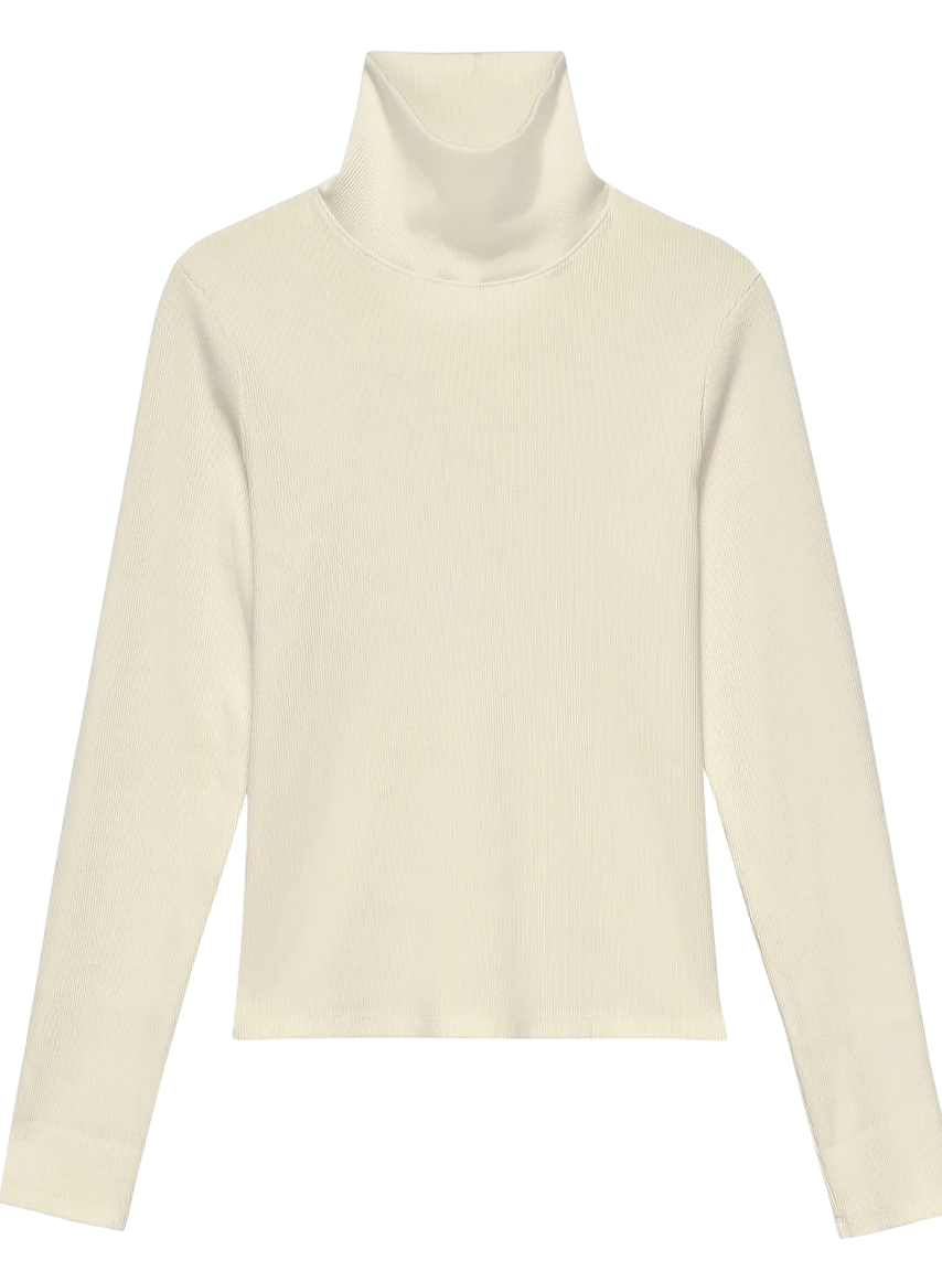 Crafted with our ultra-flattering and comfortable rib fabric, featuring a relaxed turtleneck, subtle dropped shoulder and fine rib texture.