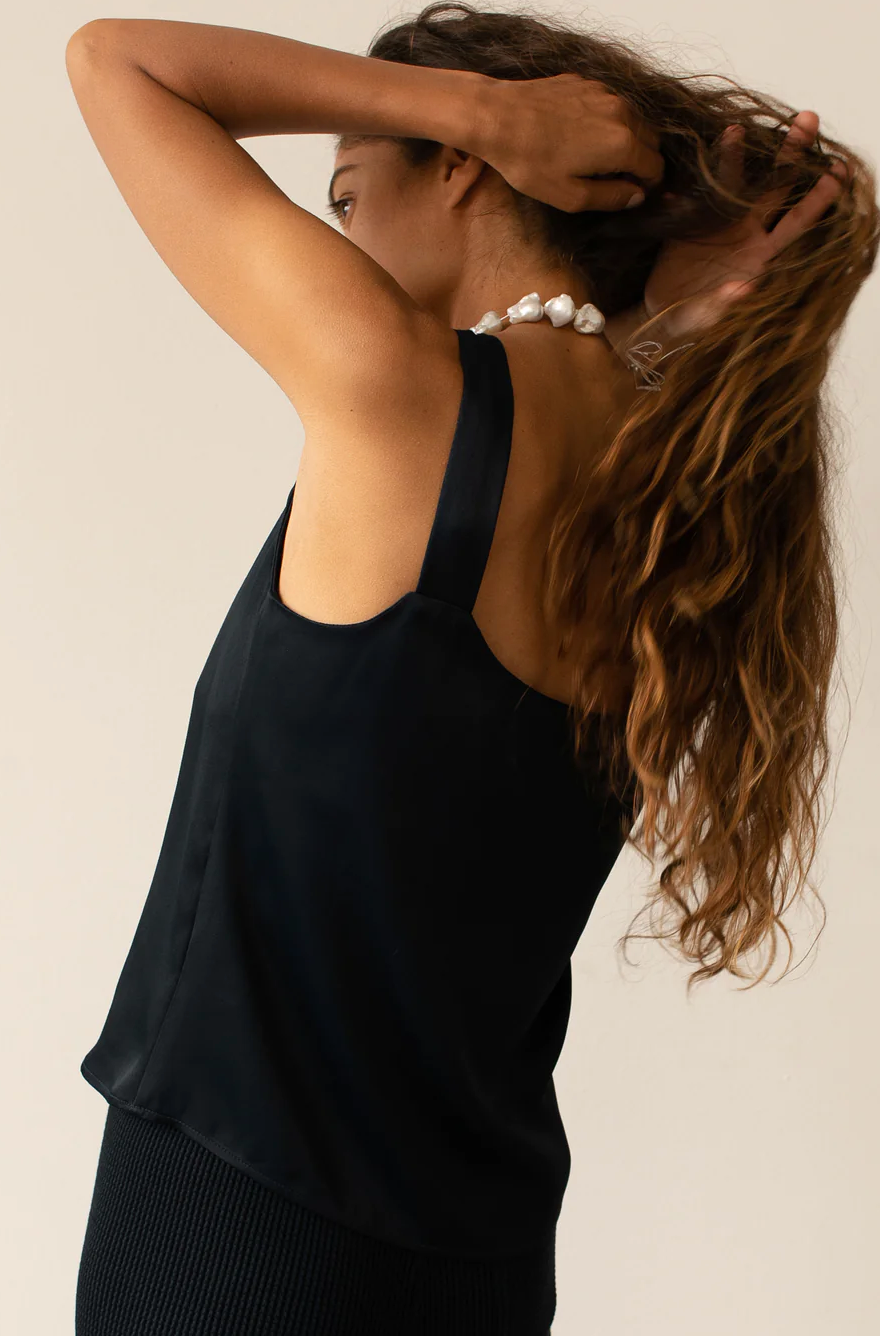 The Satiny Cami is versatile and timeless, featuring a satin-like sheen, shelf bra and simple straps.