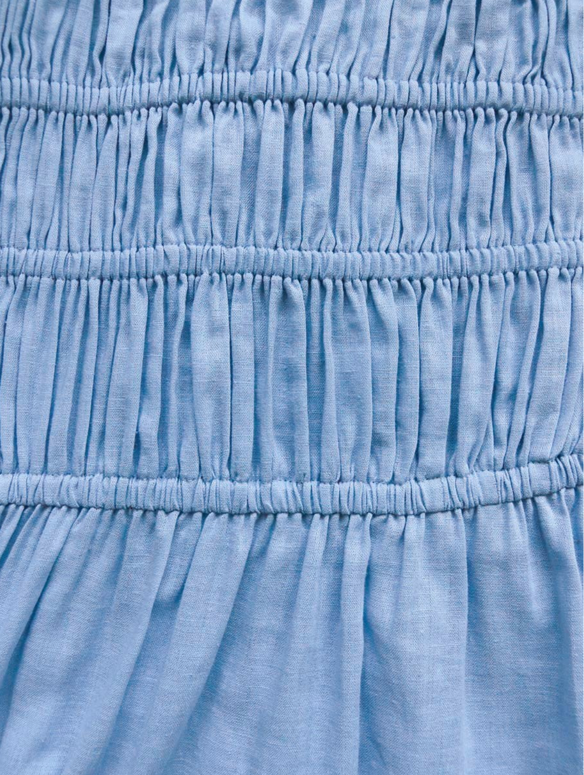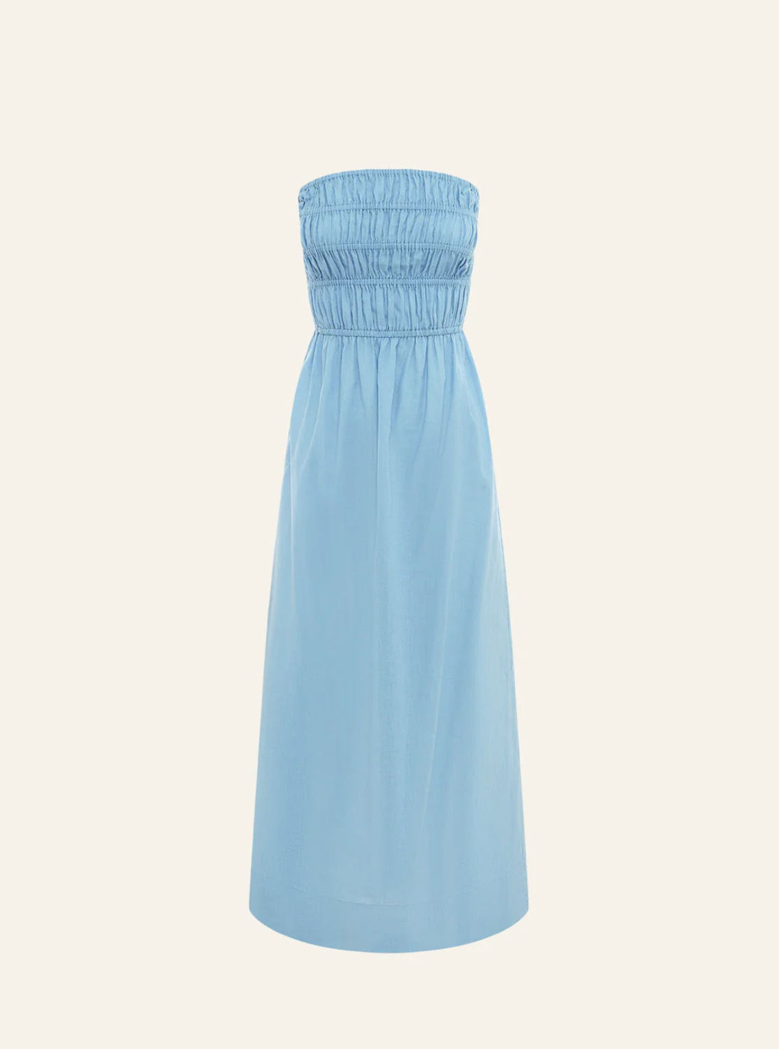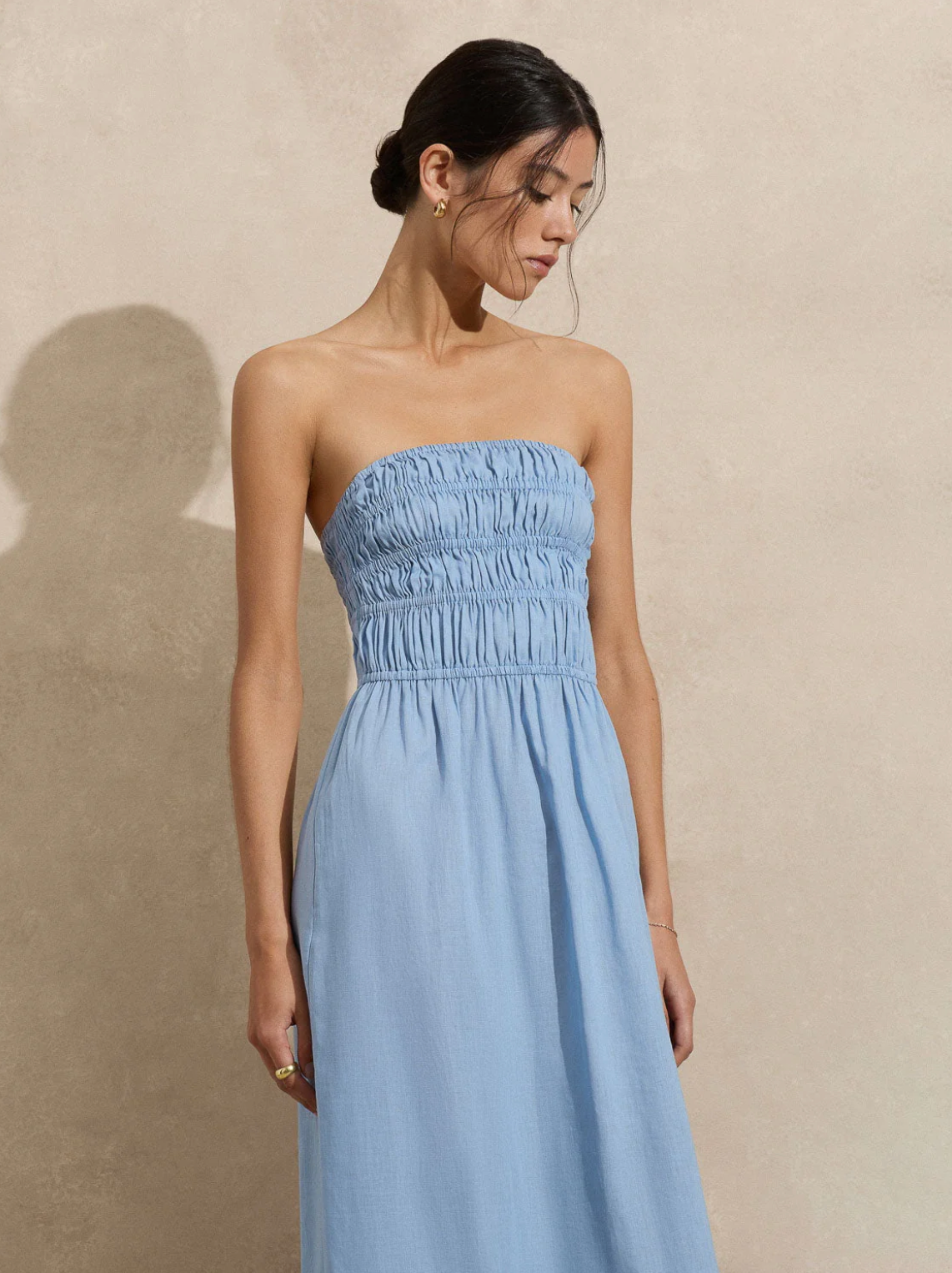 Maxi style strapless dress.Elasticated over bust for a versatile fit.Garment is not lined for an airy, lightweight feel.Made from a beautifully lightweight and softly textured blend of linen and cotton.