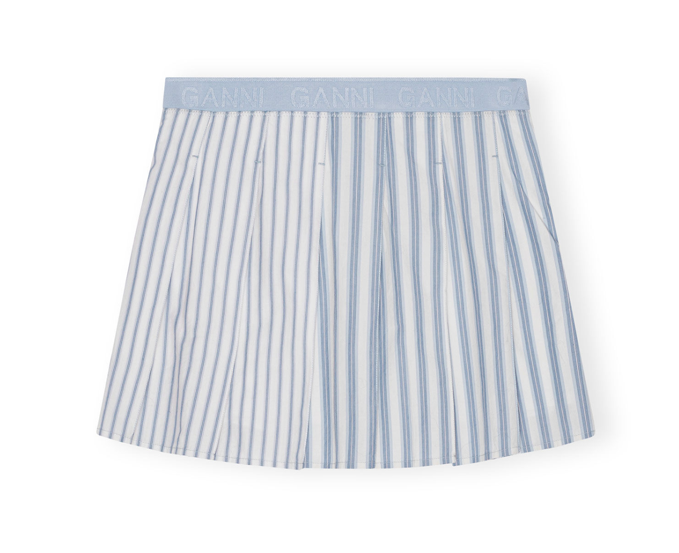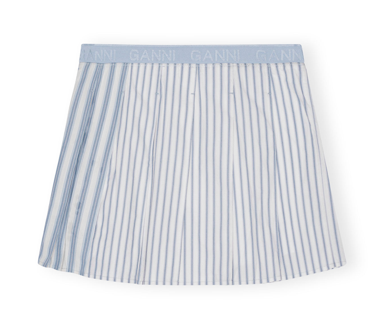 This Blue Stripe Cotton Pleated Mini Skirt features an elastic waistband with GANNI logos.