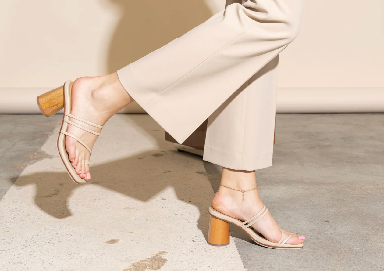 Introducing the James Smith - Taormina Toe Strap Sandal, the fresh and minimalistic staple you didn't know you needed! This sleek and gorgeous sandal features a square toe, cylindrical wooden mid-block heel, slim leather front straps and a toe strap. It's such an easy sandal to slip on and adds a chic touch to any outfit. Wear it with a floaty midi dress and a mini handbag to match for a summery day look!