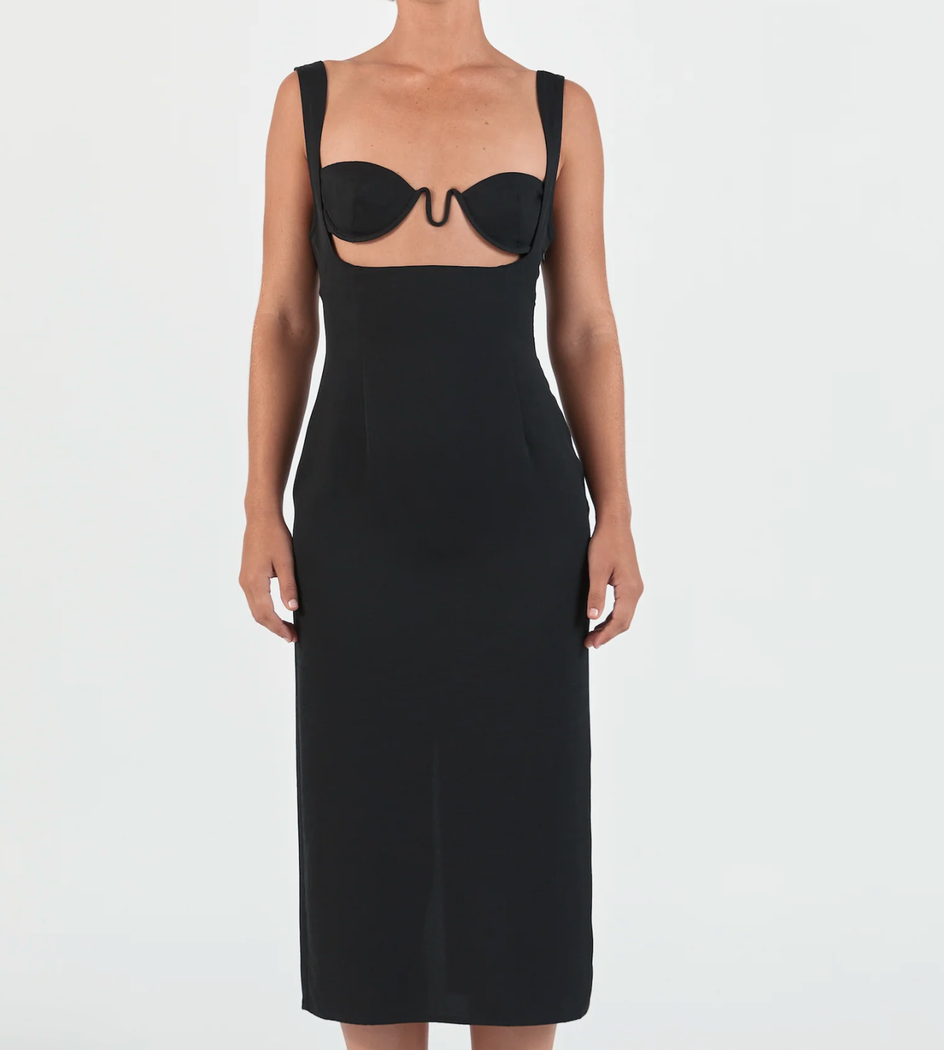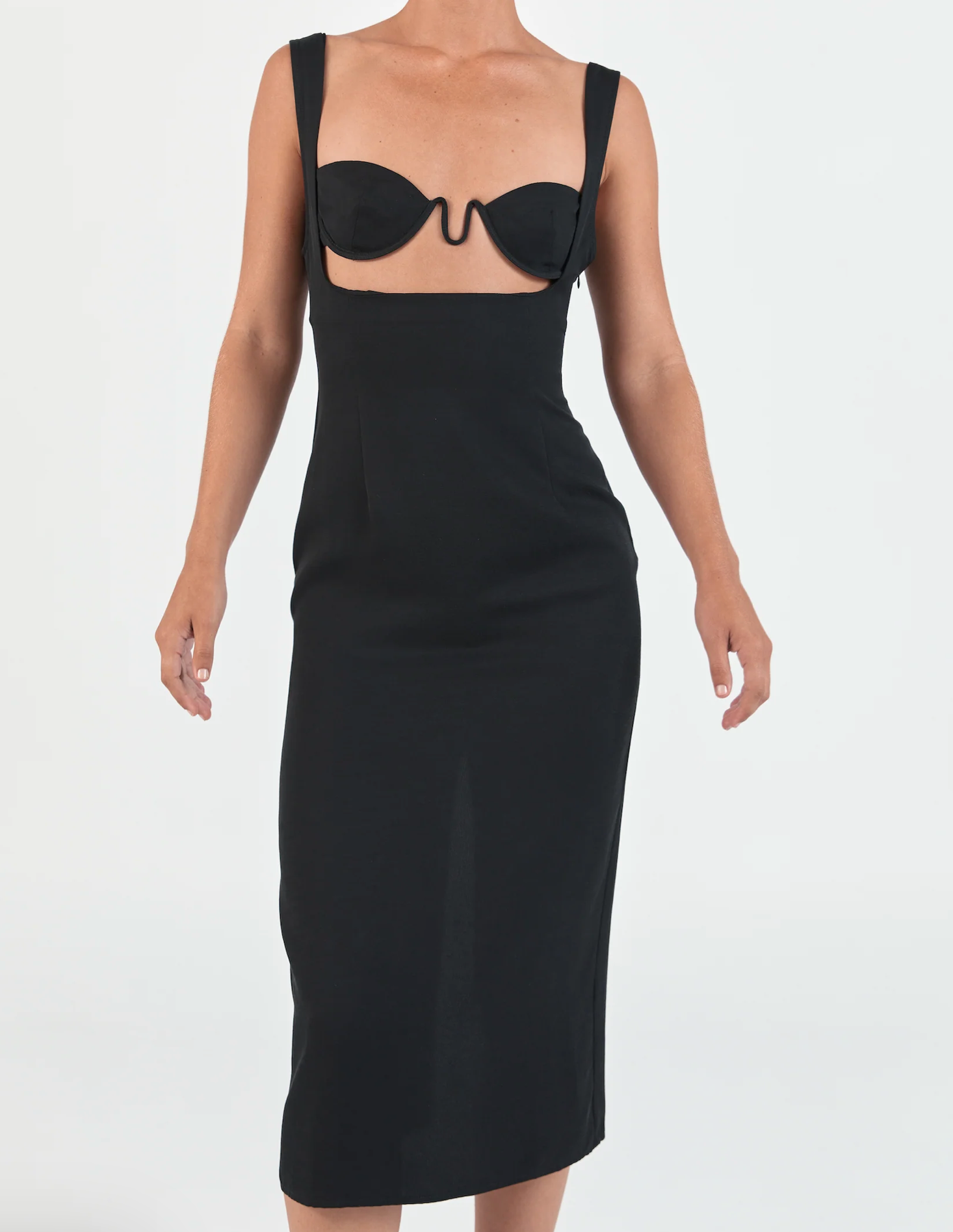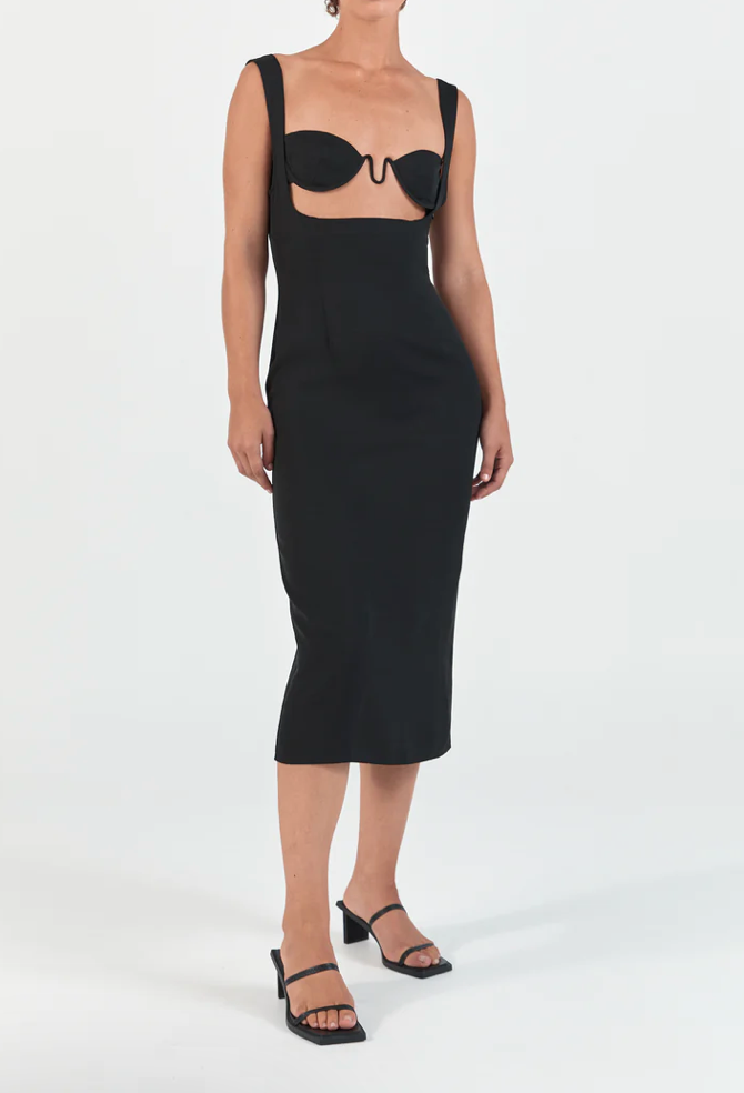 The U Wire Dress creates a demure yet minimalist statement with a deconstructed front exposing our original U Wire Top design, which comes paired with the dress.