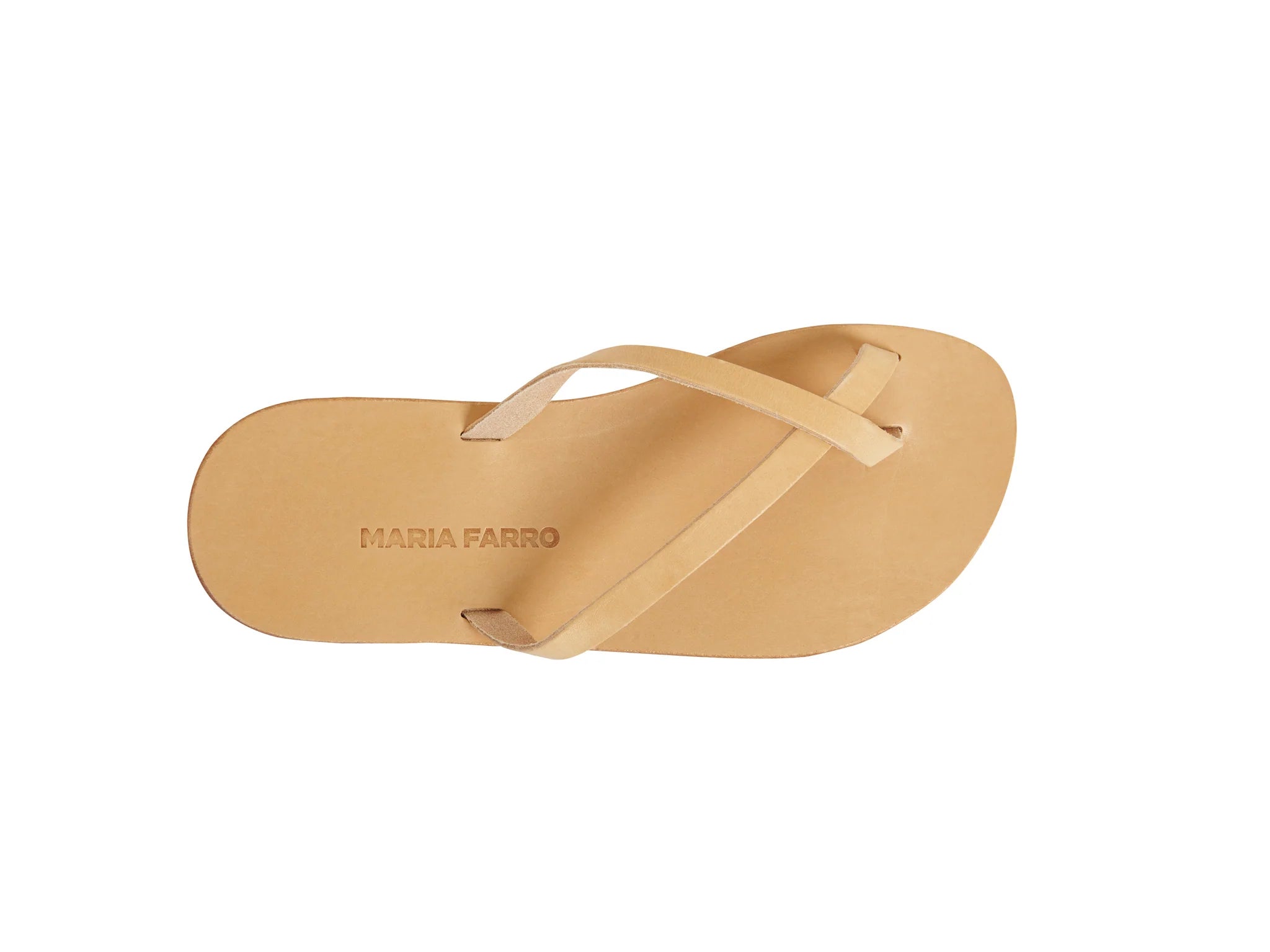 MARIA FARRO sandals are handmade with natural leather. The JENNA flip flop is a new take on a classic style, featuring slim criss-cross straps