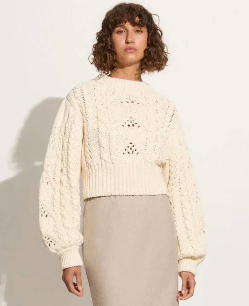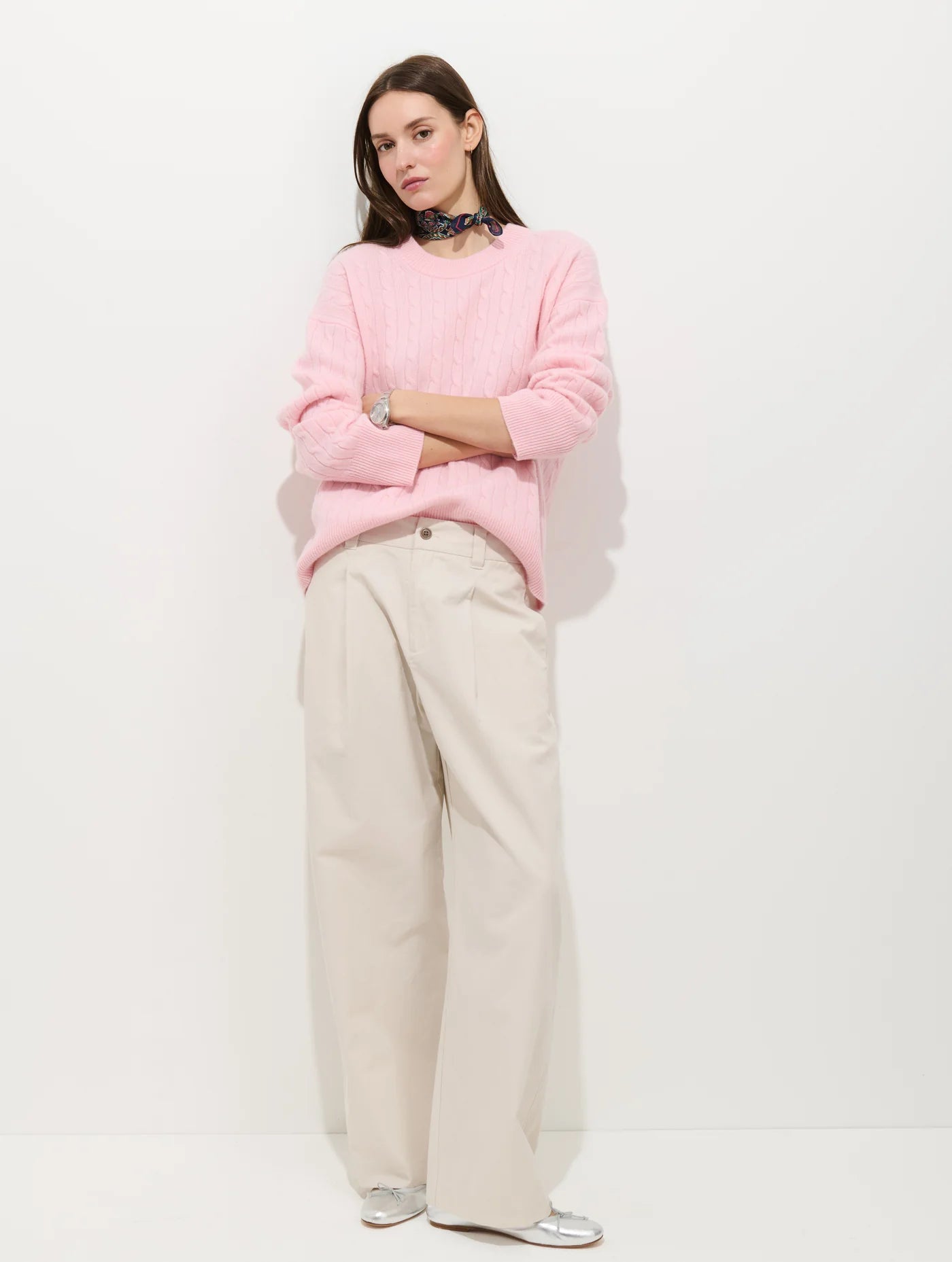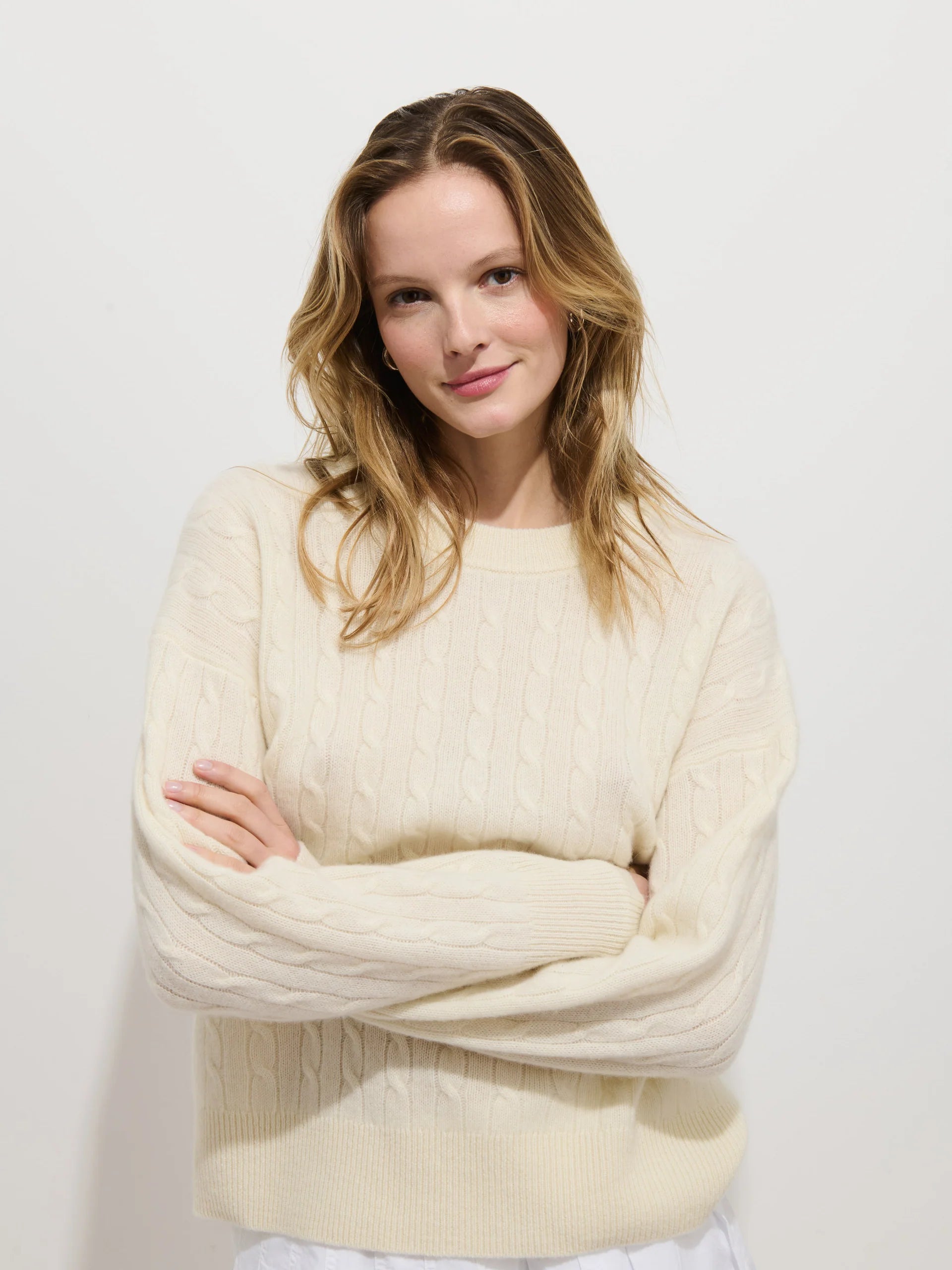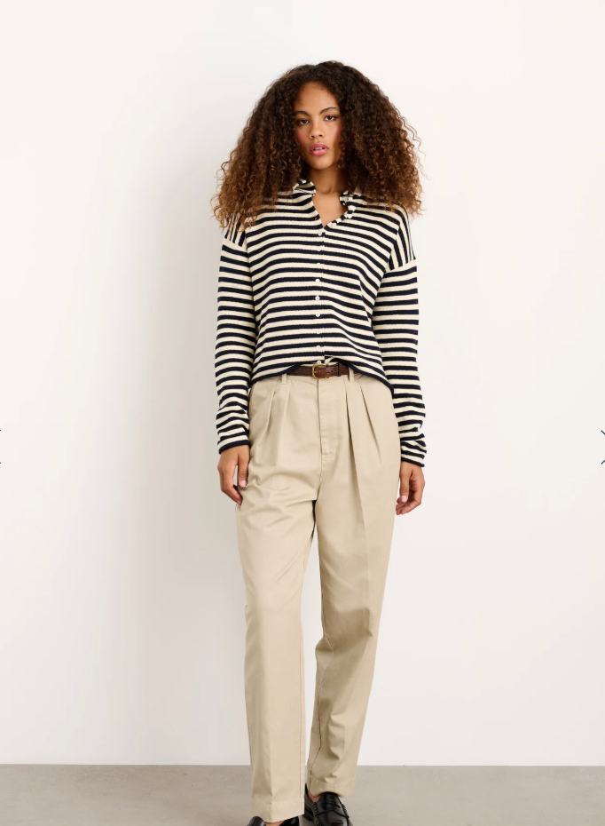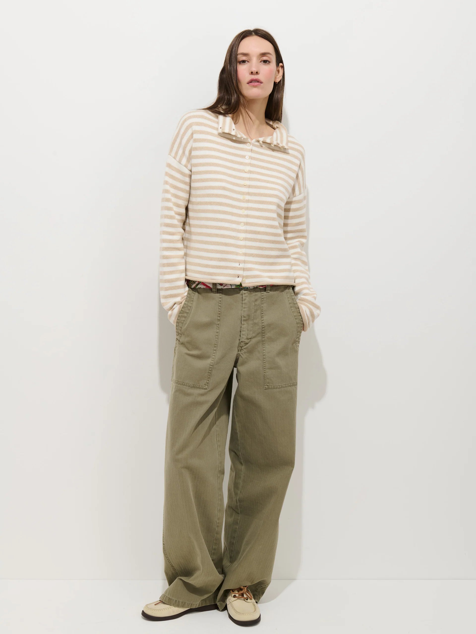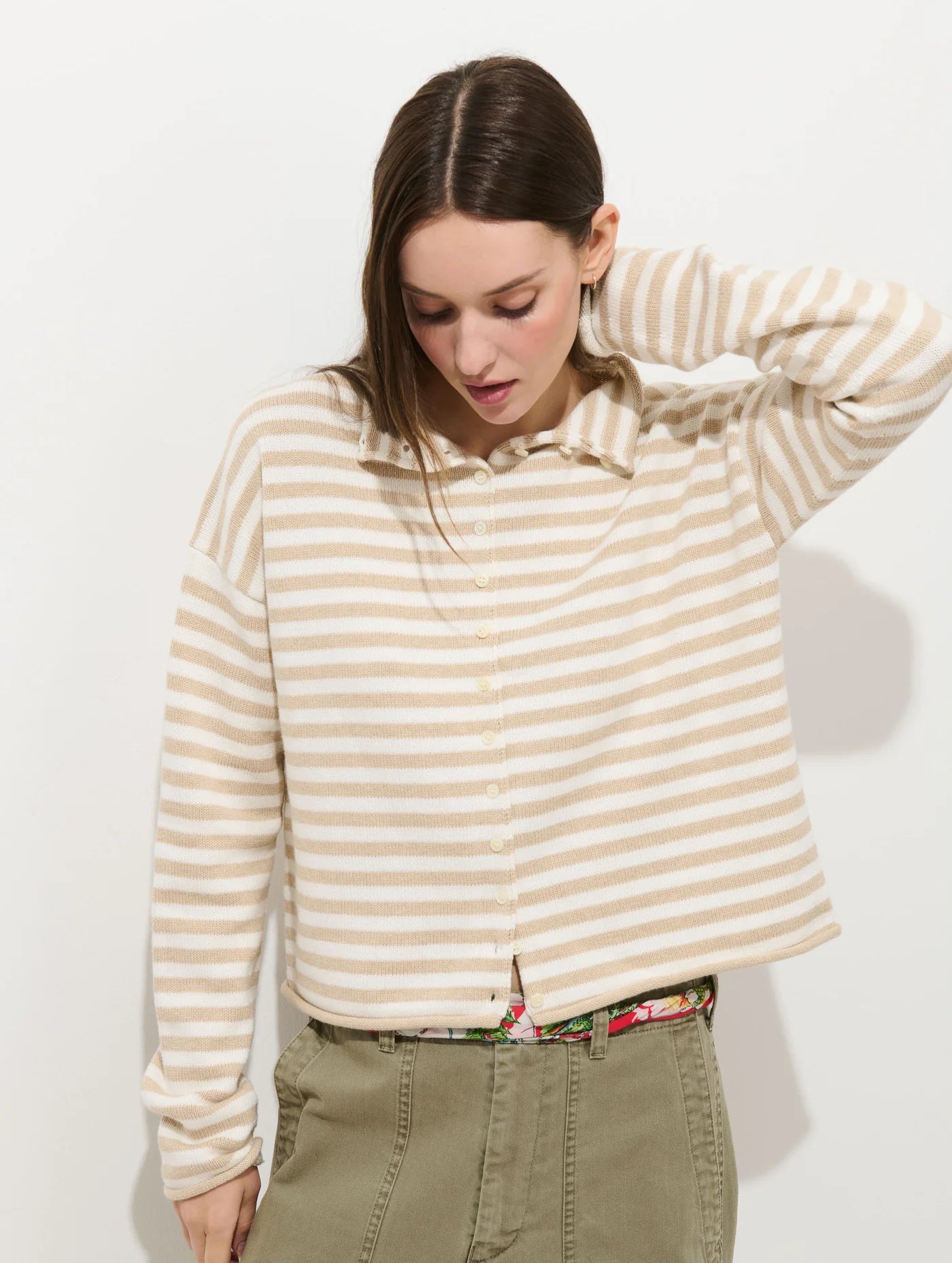 Taylor Cotton Cashmere Cardigan in Sand Stripe