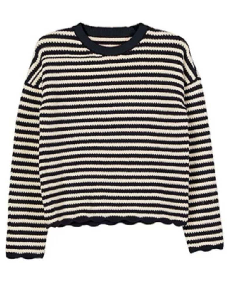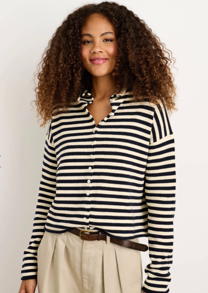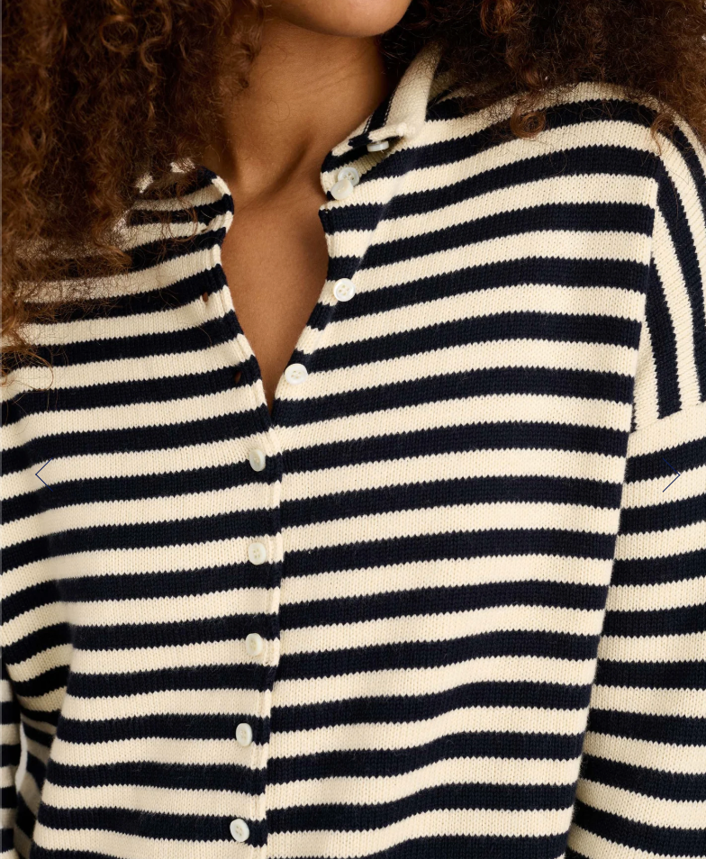 Taylor Cotton Cashmere Cardigan in Navy Stripe