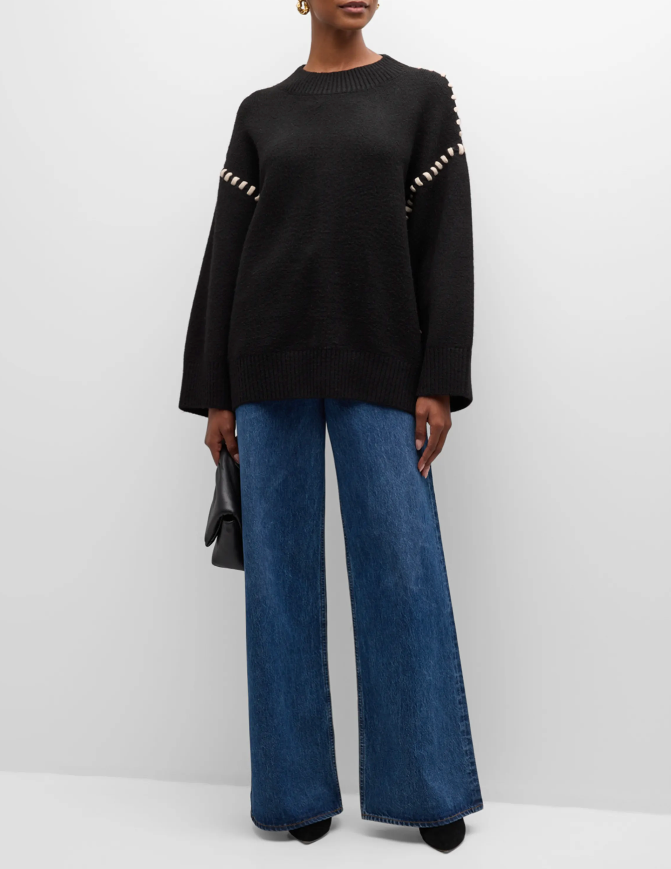 - SIMONMILLER "Leith" knit sweater framed by contrast whipstitches along the sleeves