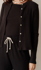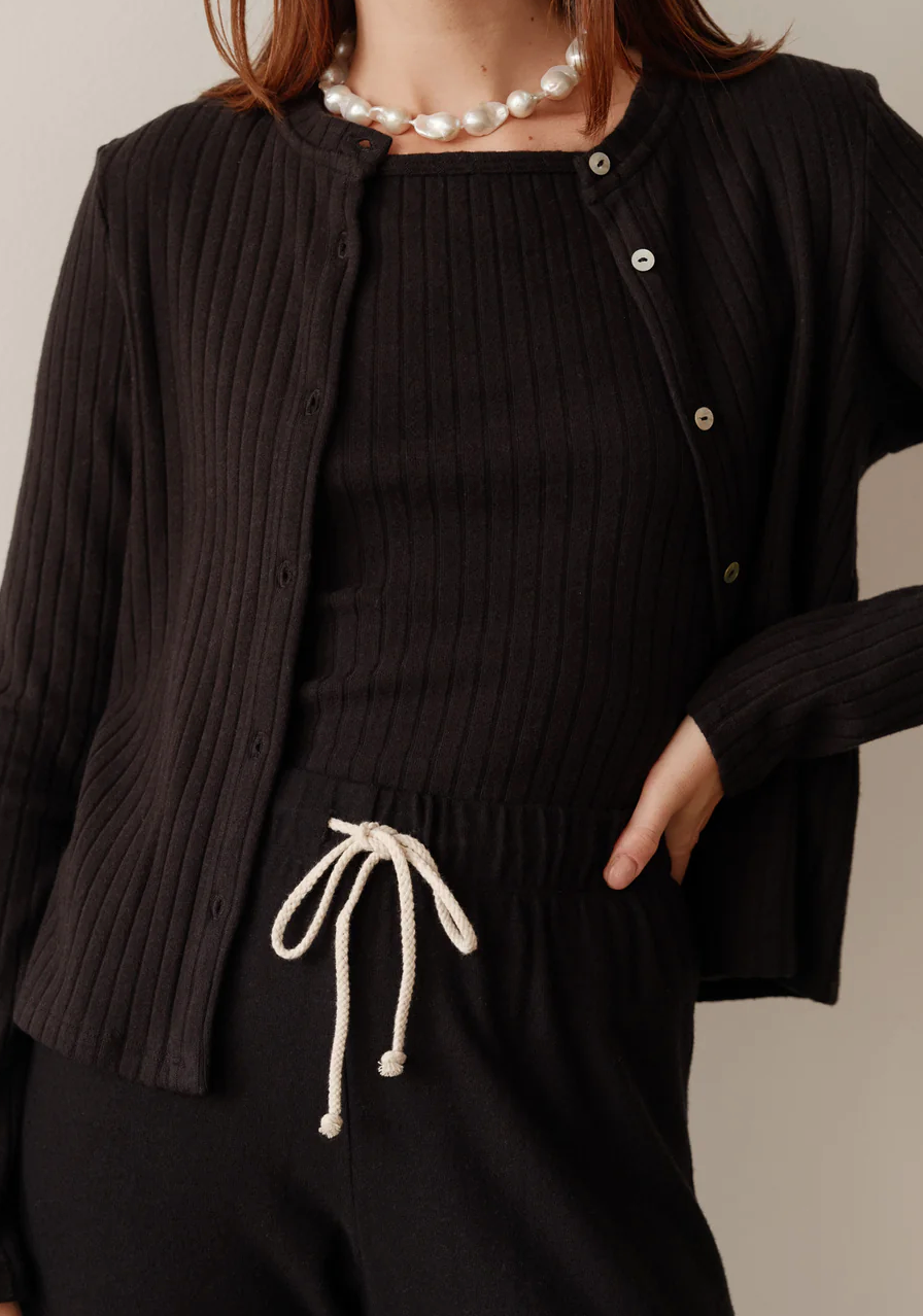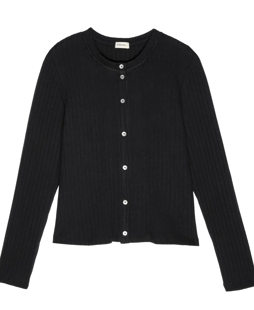 The Sweater Rib Cardi is the ultimate DONNI. staple. Crafted from our super-soft sweater rib fabric, featuring mother of pearl buttons, ribbed texture and true-to-size fit.
