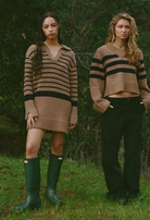 The Zenato Pullover in praline is a v-neck sweater that's perfect for layering. It features contrasting black stripes and a ribbed collar, hem and cuffs. Made from 100% cotton, it's available in sizes XS to XL.