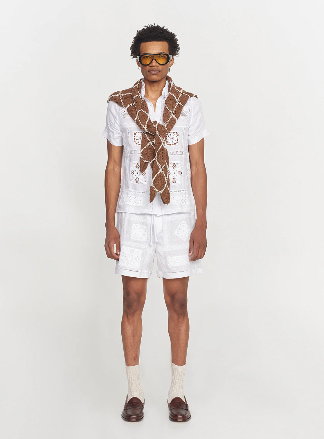 These linen and crocheted shorts are hand made by Duda's aunts, Tia Zezeca, Tia Rosa and Tia Vera. Each pair were made in Duda's mom's living room and take up to two days to make. While the look of the shorts is unique, they more importantly hold a special story around family celebrating their skills, handiwork, and passion.