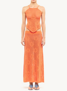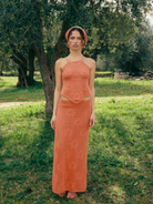 The Bruna Crochet Skirt by Asta Resort in Tangerine.