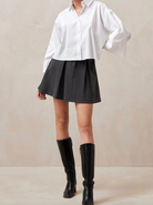 When you ask for a gray mini skirt with plenty of twirling potential, here you have Carline. Crafted from a stretchy textile, it features a short-length silhouette with swingy pleats for a satisfying swish. The best part? It flatters any body type and it goes with everything - wear it with some pointed pumps or even knee boots for less of a leg-baring look.