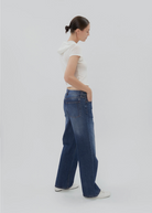 Dark wash denim requires specific care, please refer to the product care tag for specialized care instructions.