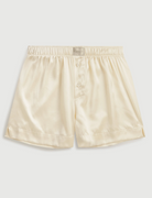 100% Silk. OEKO-TEX certified. Center back seam. Enclosed front flap with working buttons. Seamless sides with slits for relaxed fit. Covered elastic band. Made in Canada.