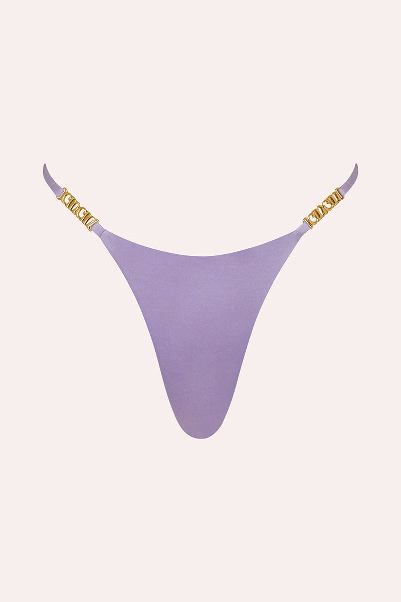 With a high-cut leg and custom Cin Cin hardware, the Midsummer bottoms are an elevated string bikini bottom.