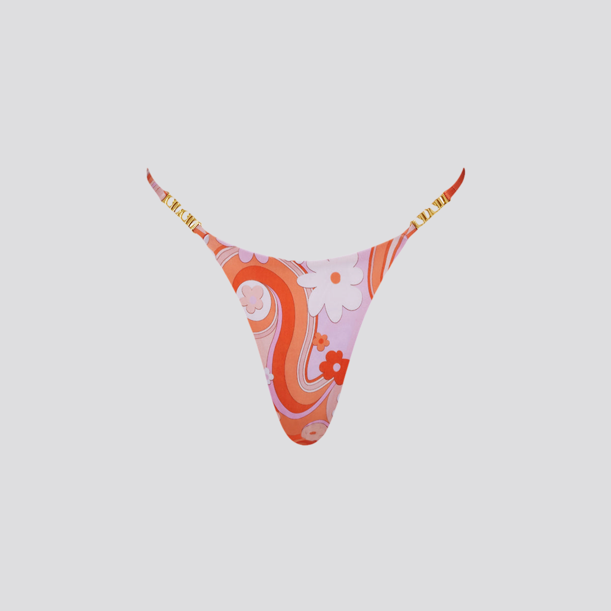 The Midsummer bottoms from our Flower Power collection are a high cut string bikini bottom with custom gold embossed Cin Cin hardware. These fun and flirtatious bottoms are self-lined and made from our sustainable Repreve® fabric, a certified recycled fibre made from post-consumer plastic waste. Our model is 177cm and wears a size Small. Check out our returns and shipping policies before you buy.
