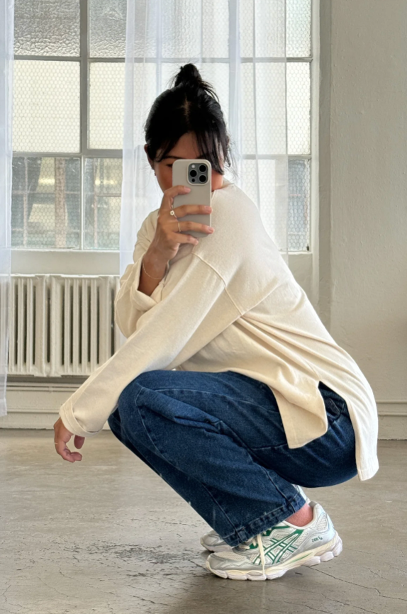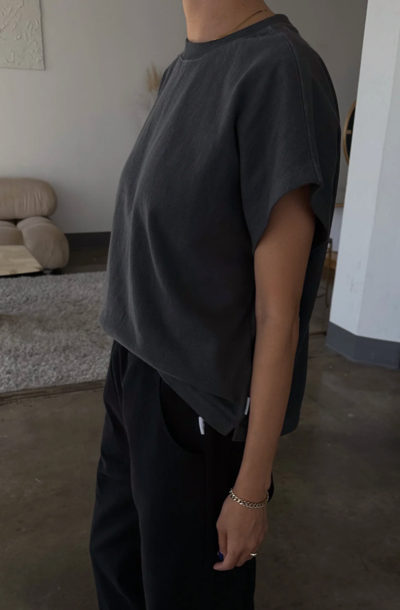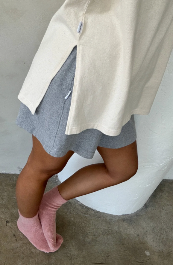 Baby Rib Scallop Long Sleeve in Heather Grey