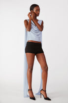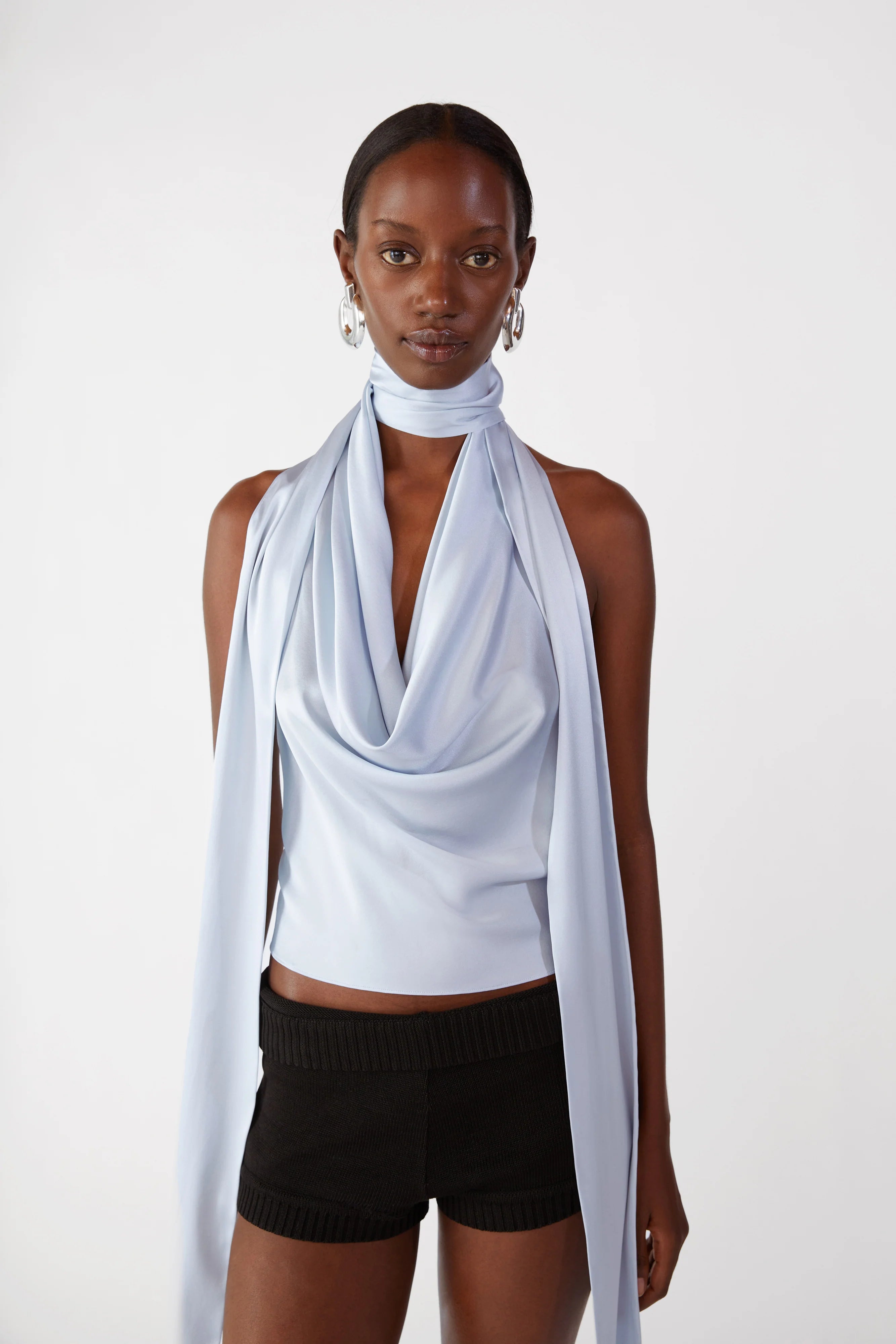 The shoulder-flattering cut and the elegant draping of a deep cowl neckline makes for a grown-up take on the going-out top. This convertible top can be worn in a myriad of ways. Made from sultry silk, it’s the long, oversized bow that drapes your back and brings the drama. It’s the details that make you the center of attention.
