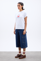 Playful and easy to wear, the Crabby Bow Shrunken Tee in white features a classic crew neck, front print, and DM embroidery at the back. Designed in a fitted block for a flattering shape, this 100% organic cotton tee is a go-to staple for everyday wear.