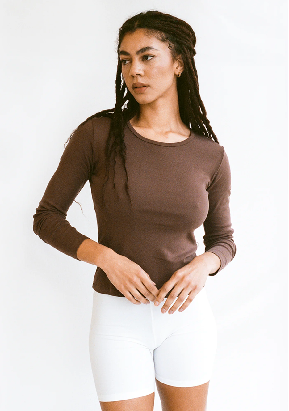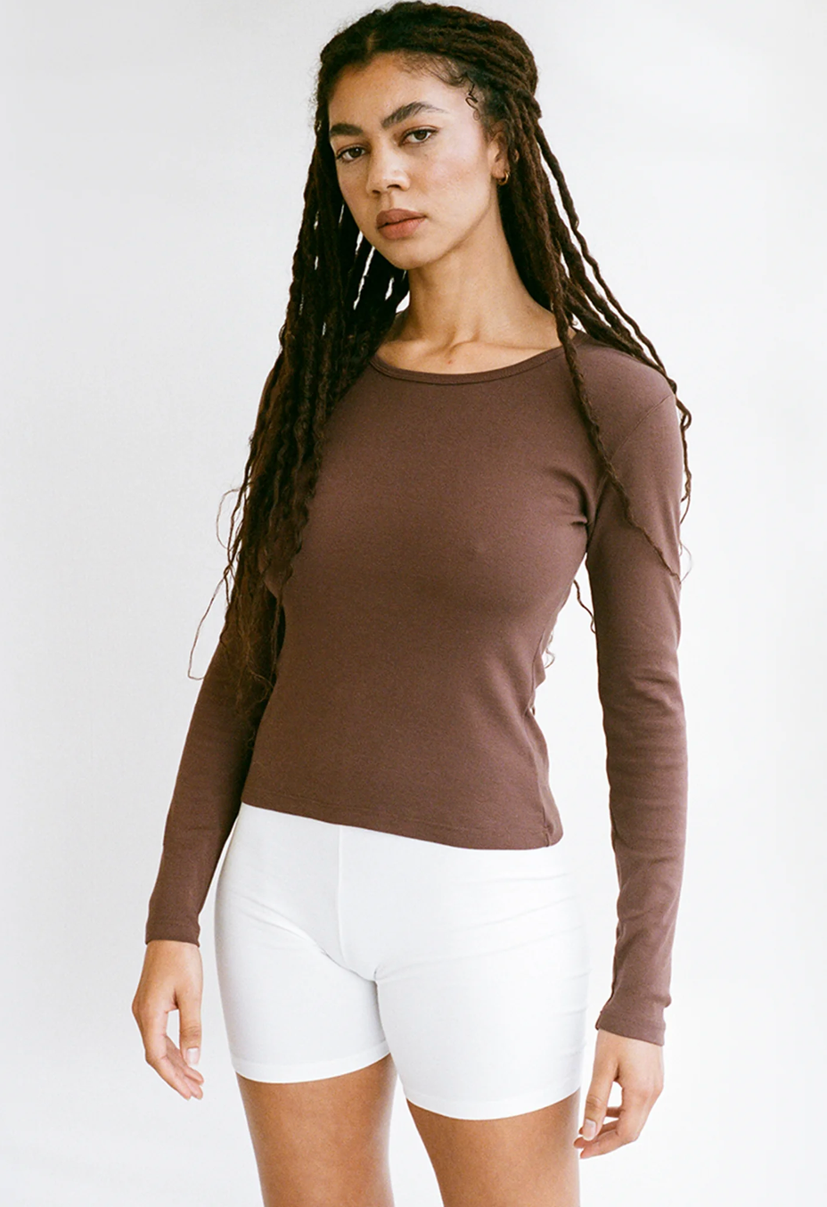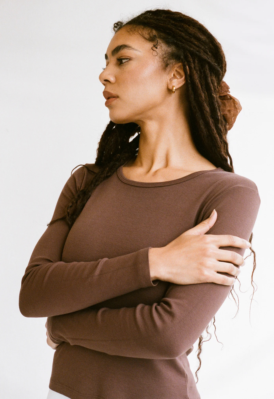 Long Sleeve Bellevue Tee in Chocolate