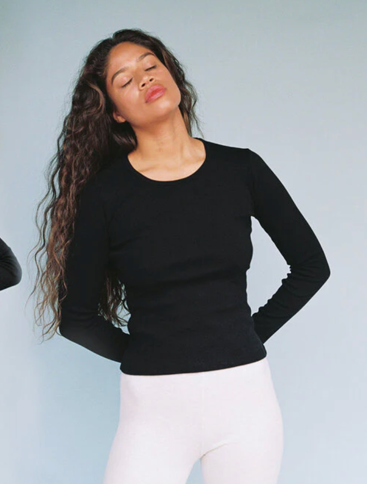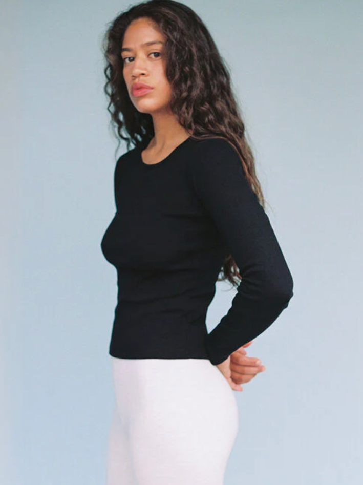Long Sleeve Bellevue Tee in Black