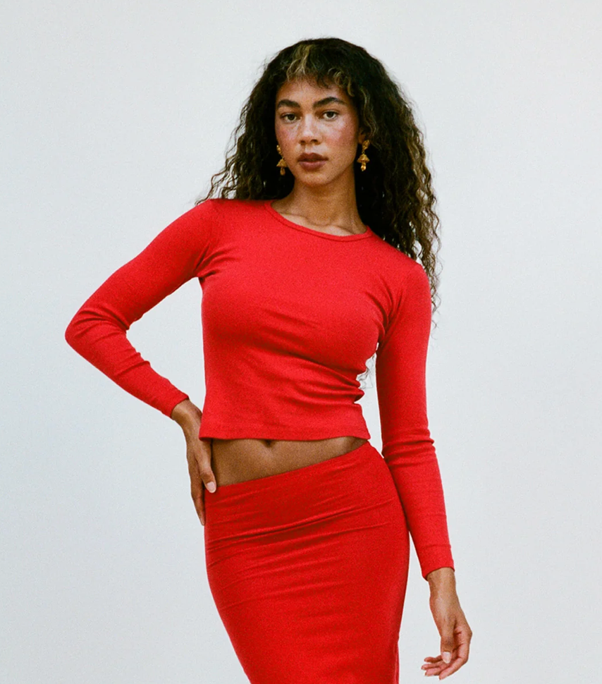 Long Sleeve Bellevue Tee in Tomate