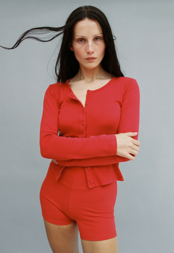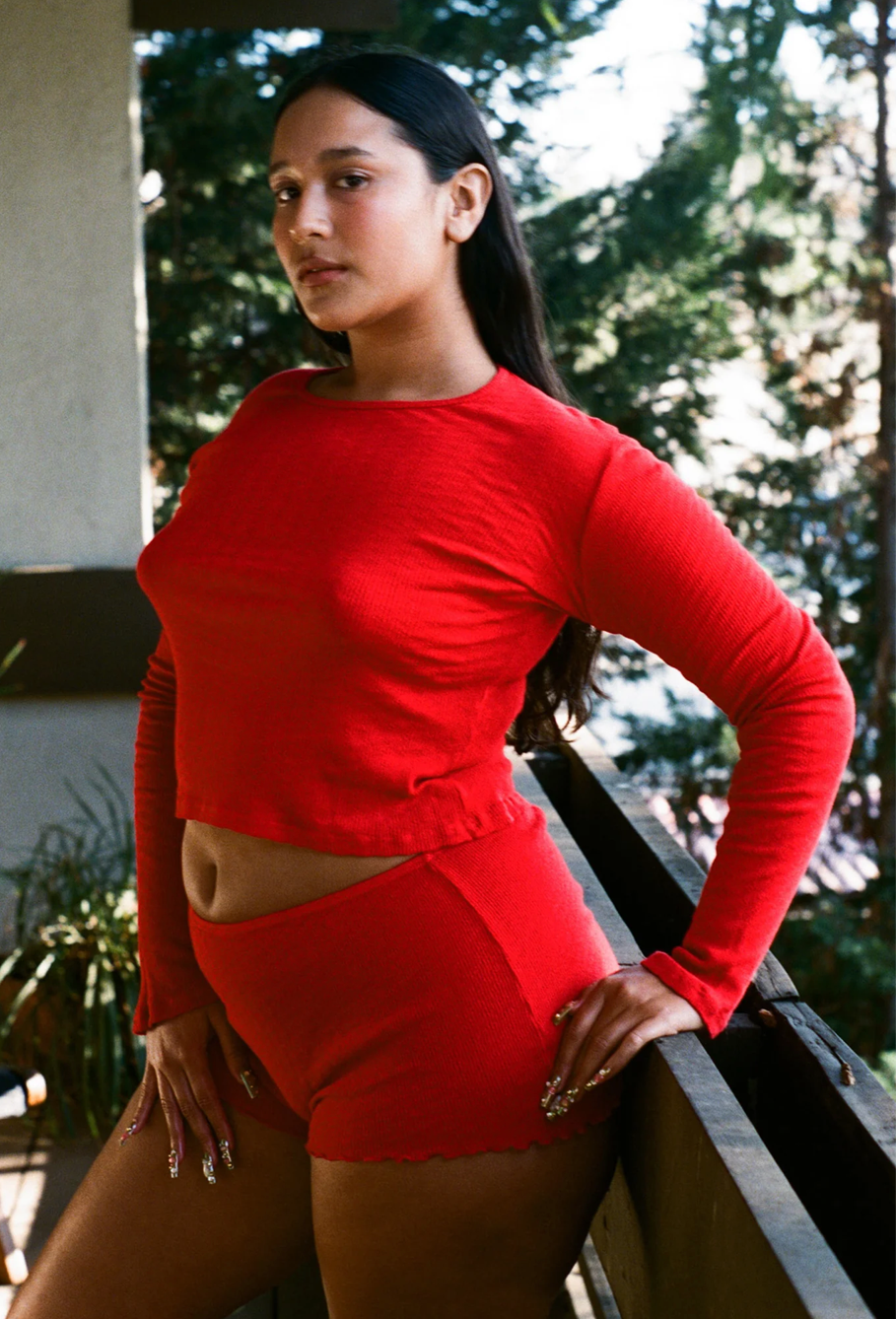 Pointelle Perla Long Sleeve Tee in Tomate