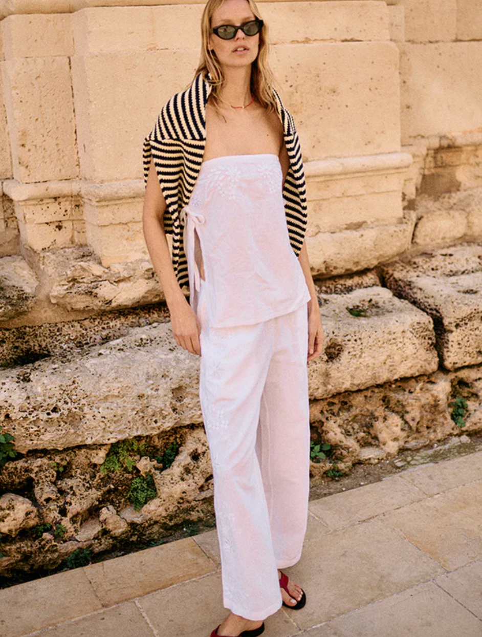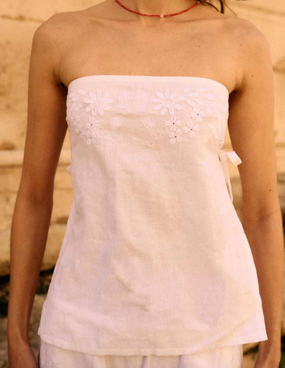 Sebastian White Embroidered Linen Top