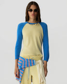 THE BASEBALL TEE IS A WOMEN’S LIGHT-WEIGHT CASHMERE SWEATER FEATURING BOLD COLORBLOCK RAGLAN SLEEVES AND A SPORTY CREWNECK SILHOUETTE. CRAFTED FROM 100% CASHMERE, THIS VERSATILE KNIT IS PERFECT FOR EVERYDAY WEAR—STYLE IT WITH DENIM FOR AN EFFORTLESS LOOK OR PAIR IT WITH THE GIR TRACK PANT FOR A COORDINATED CASHMERE SET.