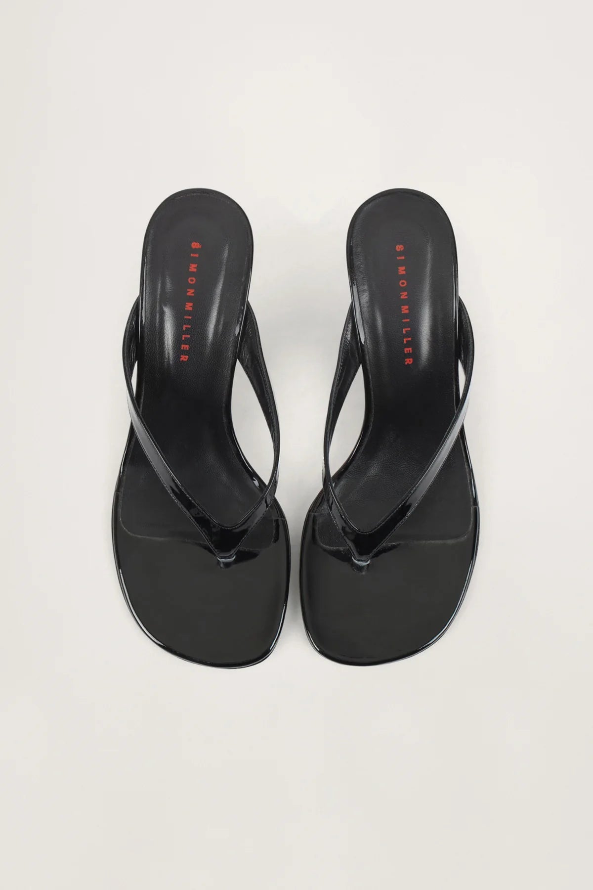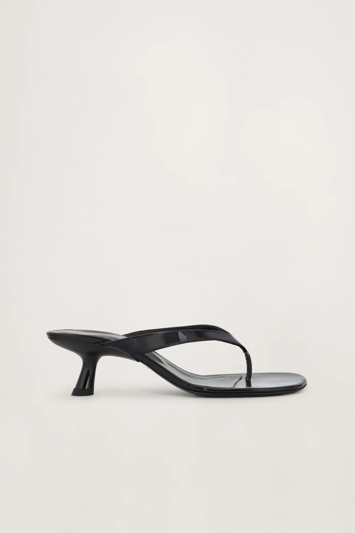 OUR BEST-SELLING PATENT STRAP THONG WITH TEE HEEL. A CLASSIC HEELED SANDAL TO PAIR WITH EVERY OUTFIT.