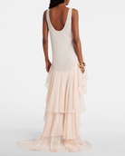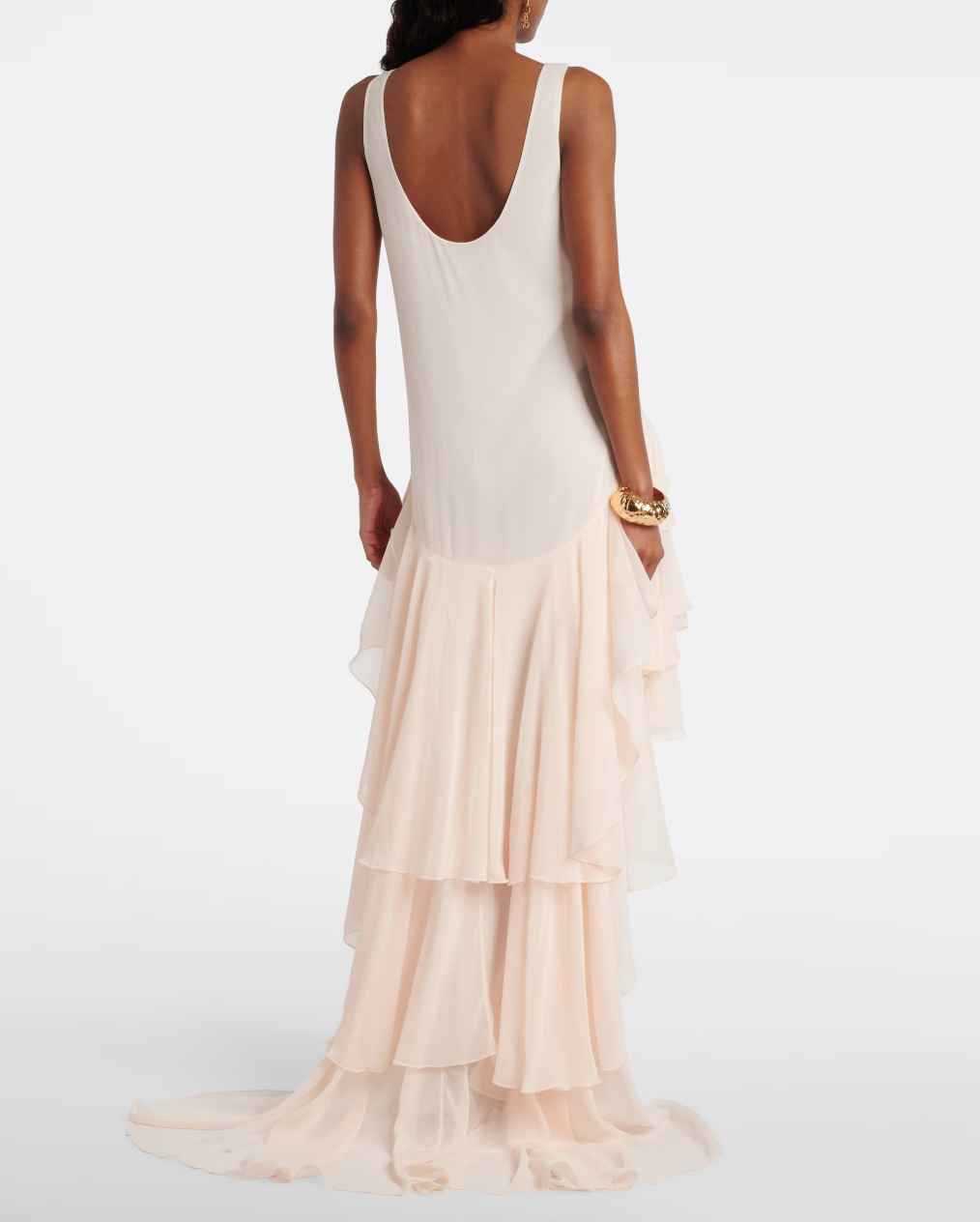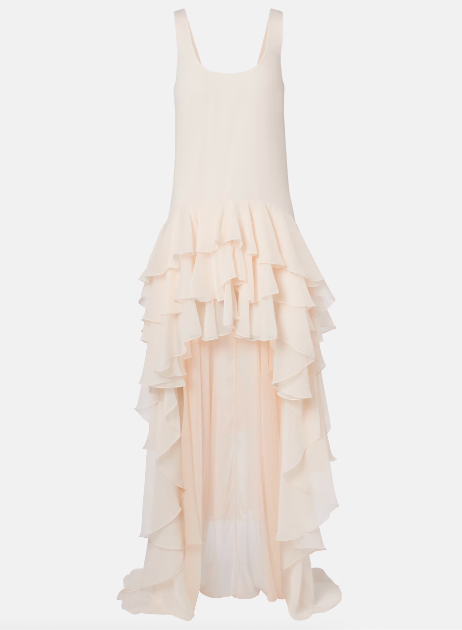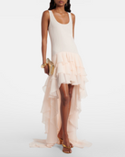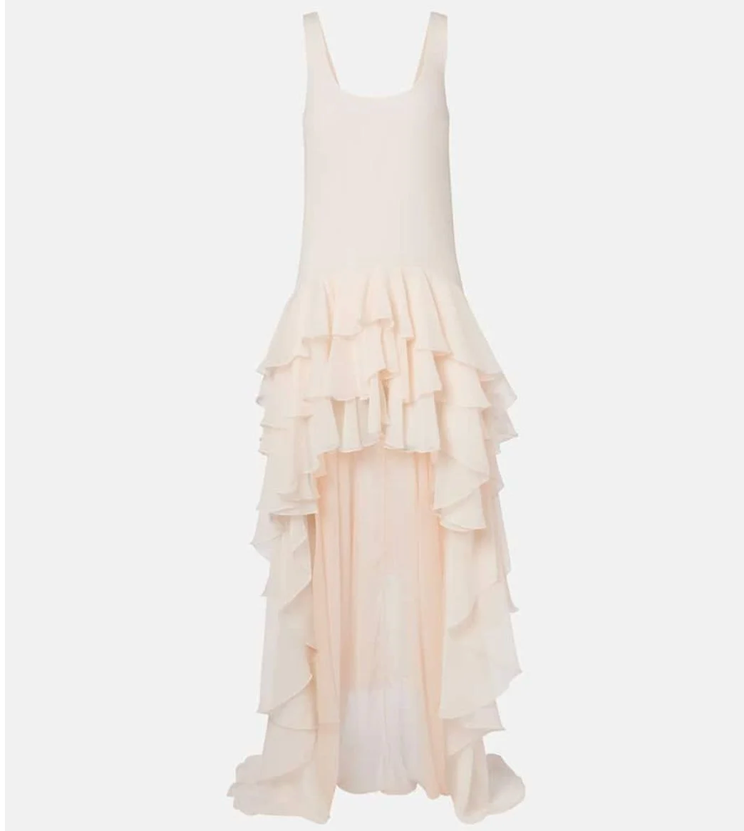 Fill the gaps in your going-out wardrobe with unique and glamorous styles from Rotate. Made from wispy chiffon, this maxi dress features a minimalist bodice and a ruffled skirt with an asymmetric hemline.