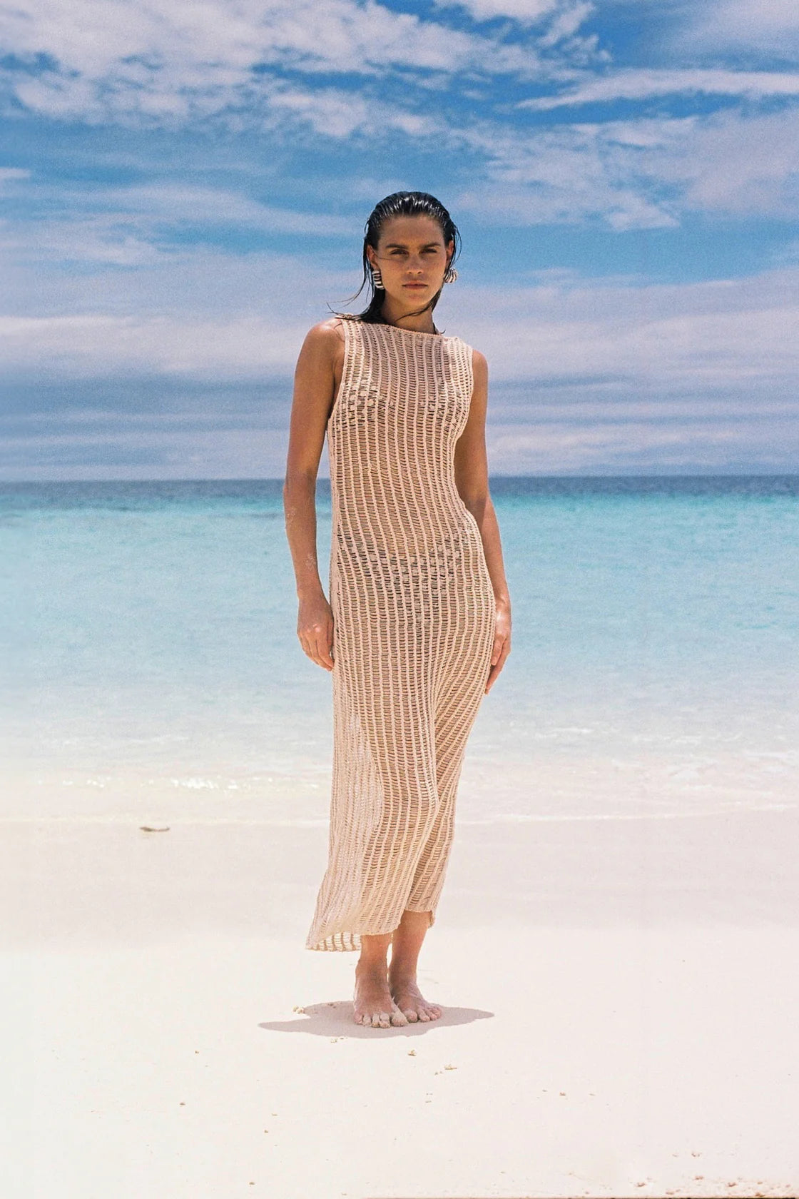 The Husk Cotton Crochet Pullover Dress by Zulu & Zephyr features a relaxed boat neckline, chic low back detail in soft yet sturdy, custom crochet. Throw this loose-fit knit over swim while lounging by the pool, or for a late afternoon cocktail - a luxe timeless staple you will turn to for years to come.