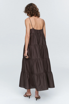 A refined take on voluminous summer dressing, the Ophelia Dress is crafted from lightweight cotton/silk in a rich tapenade hue. Features narrow self-fabric straps that can be adjusted at the back. Cut with a softly tiered panel construction to create gentle volume and a fluid drape that skims the body.