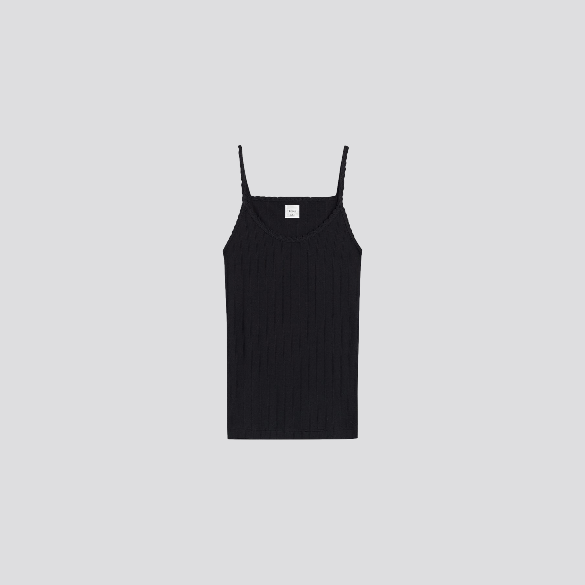 Looking for an easy layer with a little something extra? Our black classic tank in a soft, lightweight cotton pointelle is perfect. It features a scalloped neckline and straps for a chic look.