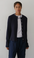 Crafted from our super-soft and cozy sweater rib fabric. This cardigan features mother of pearl buttons, and a ribbed texture.