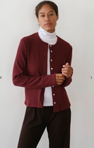 Crafted from our super-soft and cozy sweater rib fabric. This cardigan features mother of pearl buttons, and a ribbed texture.